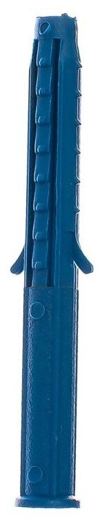 | Применение продукта | Дюбель имеет плоский цилиндрический бортик и 4-х сегментную распорную зону, на которой присутствуют специальные элементы – шипы и усы. Продольные ребра жесткости на шейке дюбеля, шипы и усы на распорной зоне обеспечивают надежную фиксацию дюбеля в материале основания, предотвращают проворачивание при установке. Изготовлен из полипропилена синего цвета. Дюбель универсален, применяется для крепления изделий к основаниям из всех типов строительных материалов: полнотелый кирпич, пустотелый керамический кирпич, полнотелый бетон, керамзитобетон, листовые материалы. При монтаже в пустотелых материалах шуруп вязнет в свободном конце дюбеля и скручивает его в узел. Используется совместно с универсальными шурупами, сантехническими болтами, шпилькой-шурупом и т.д. Устанавливается в предварительно просверленное отверстие. Не рекомендуется применять с черными саморезами. |