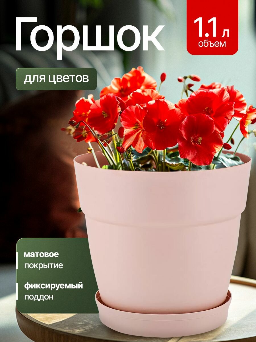 Простая и изысканная форма горшка - самая универсальная. Поддон крепко фиксируется к основанию горшка. Благодаря высоким бортикам поддона лишняя жидкость не будет проливаться.