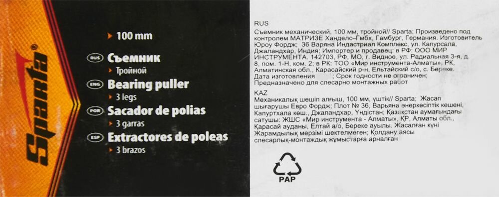 Сервис сравнения цен СкидкаГИД предлагает сравнить цены на товар «Съемник подшипников механический Sparta 525305 100 мм»