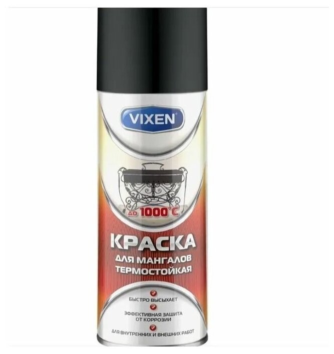 **Краска для мангалов Vixen** повышенной термостойкости предназначена для окрашивания мангалов, барбекю, грилей, коптилен, каминов, печей и других металлических изделий, эксплуатирующихся при температуре до 1000˚С.