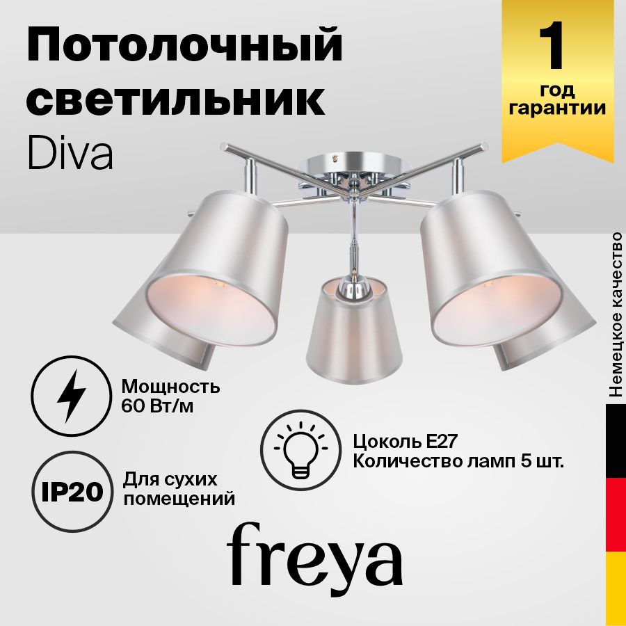 Сервис сравнения цен СкидкаГИД предлагает сравнить цены на товар «Светильник потолочный Freya FR5145CL-05CH 5 ламп 15 м² цвет хром/серый»