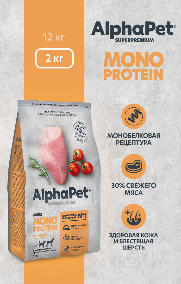 ALPHAPET MONOPROTEIN Adult Корм сух.индейка д/собак мелких пород 500г (86164)