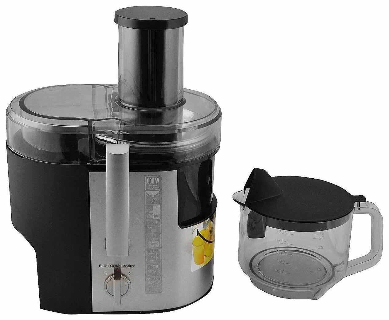 Резервуар для сока вместимостью 1,5 л и резервуар для мякоти объемом 2 л позволяют собирать большое количество сока и мякоти без перерывов.
