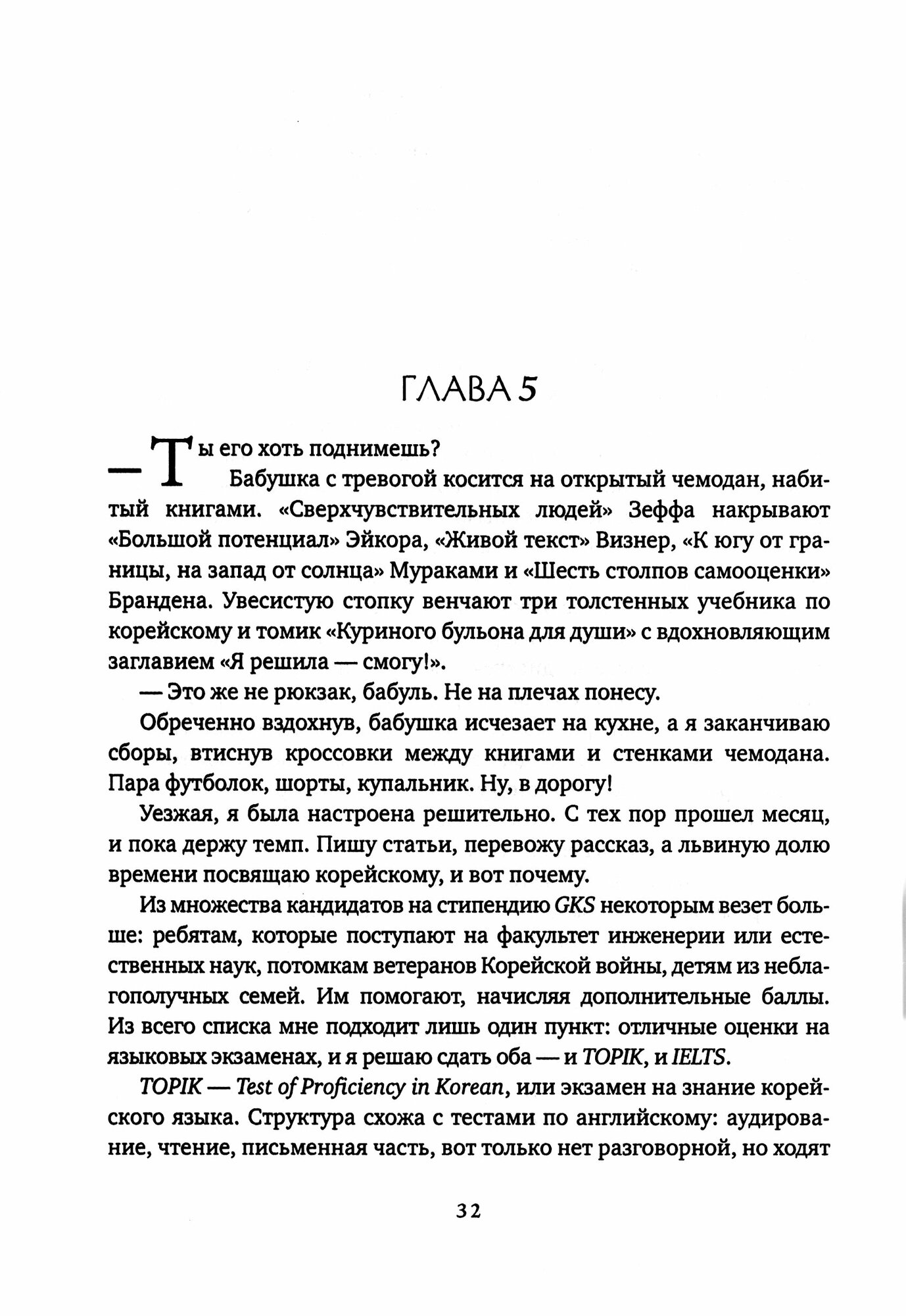 Книга-дневник об испытаниях на пути к мечте и Корее - родине К-pop, смартфонов Samsung и кимчхи. Путешествуя по стране, автор рассказывает о современных корейцах: деревенском быте и жизни в городах, походах в горы, буддийской кухне, национальных праздниках на улицах и в кругу семьи. Обычаи, культура, традиции, а также люди и их истории, которые автор прилежно собирала, что показать нам удивительную Корею, жемчужину Дальнего Востока.
