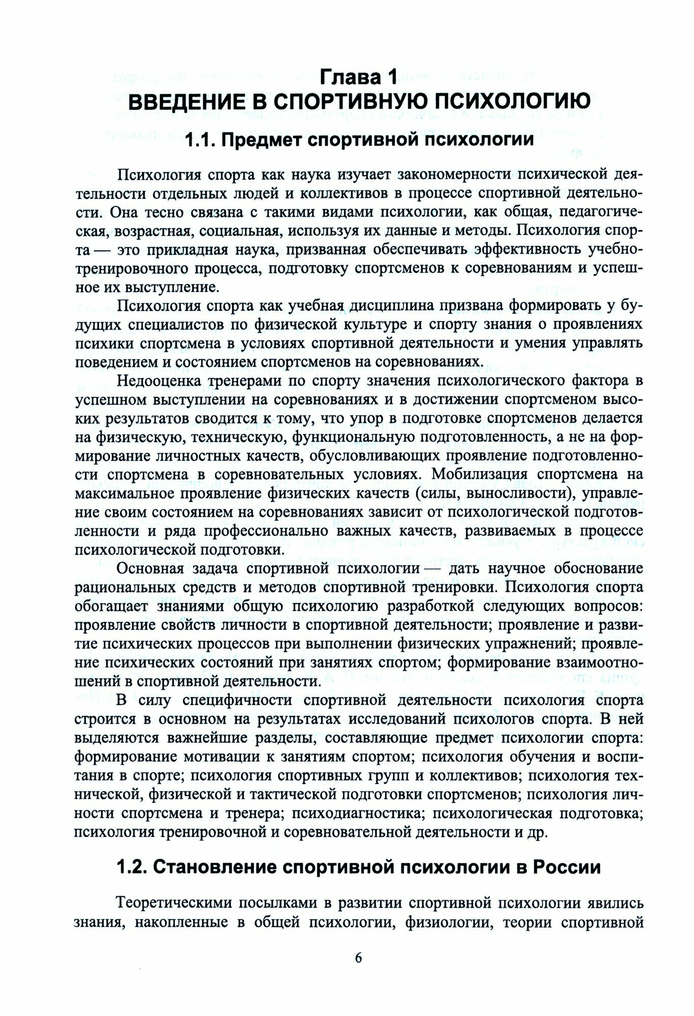 Учебник включает две части: общая психология, спортивная психология. В первой части приводятся история и теории психологии, характеристика психических процессов, свойств, состояний и взаимоотношений. Во второй части представлены сведения о проявлении психики в процессе занятий спортом. Приводится история возникновения и становления психологии спорта в России, современное состояние научного психологического знания и его значение в подготовке тренеров по спорту и спортсменов. Представлены современные научные сведения об общей и спортивной психологии как учебной и научной дисциплине, расширяющие психолого-педагогический кругозор будущих специалистов по физической культуре и спорту.
