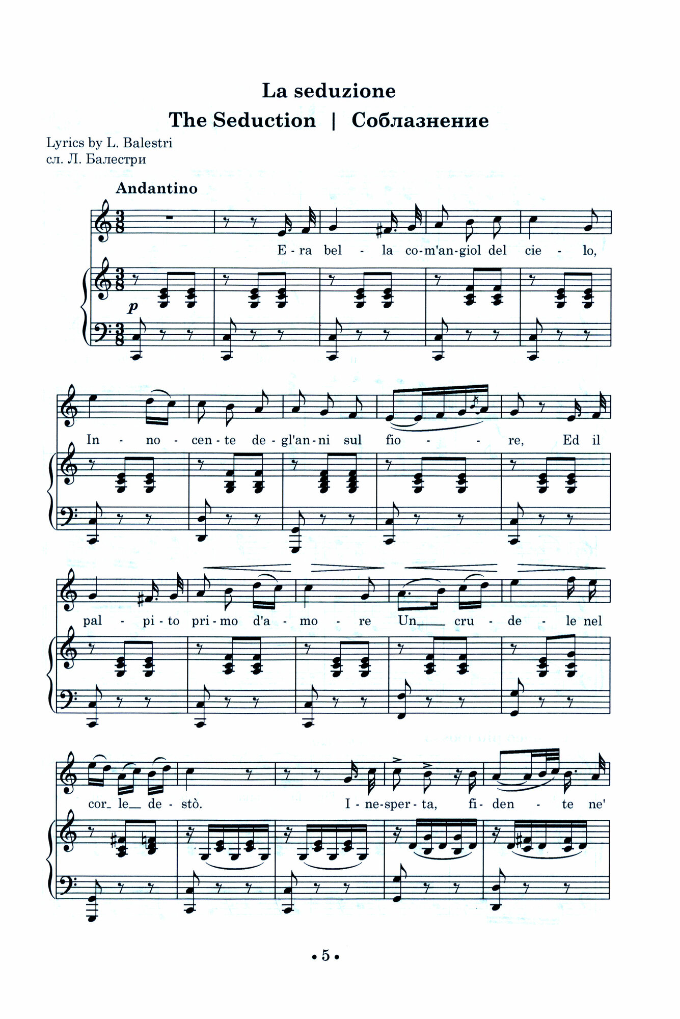 К камерно-вокальным жанрам Джузеппе Верди (1813-1901) обращался на протяжении всего творческого пути. Большинство опусов обозначены термином «romanze». В наследии композитора присутствуют как циклы, так и отдельные песни. В издание вошли сочинения на стихи Л. Балестри, Я. Витторелли, И. В. Гёте. Т. Бьянки и др. Сборник адресован студентам вокальных отделений музыкальных училищ и вузов, профессиональным исполнителям.