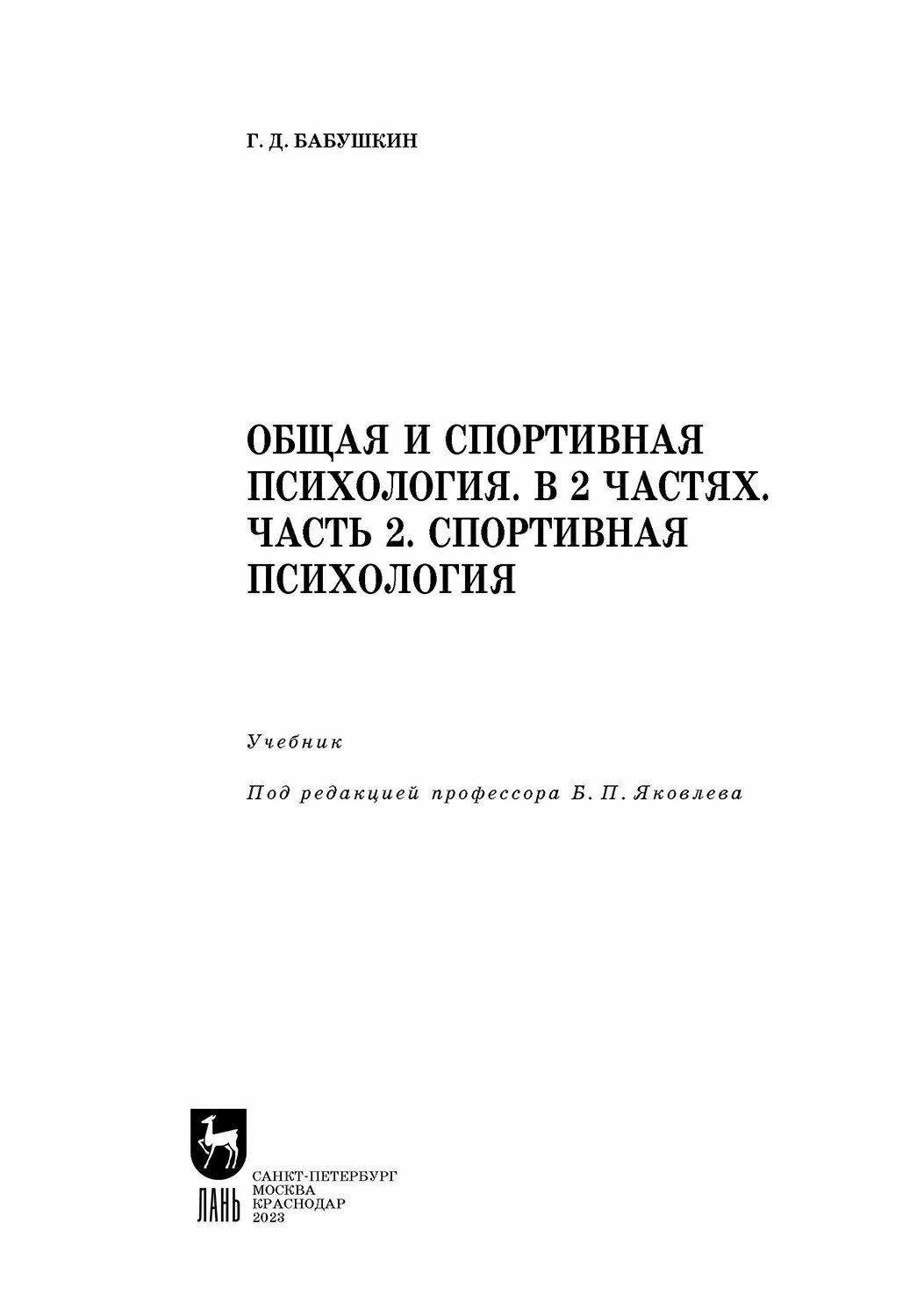 Общая и спортивная психология. В 2 частях. Часть 2. Спортивная психология (Г. Д. Бабушкин); Издательство ЛАНЬ, 2023