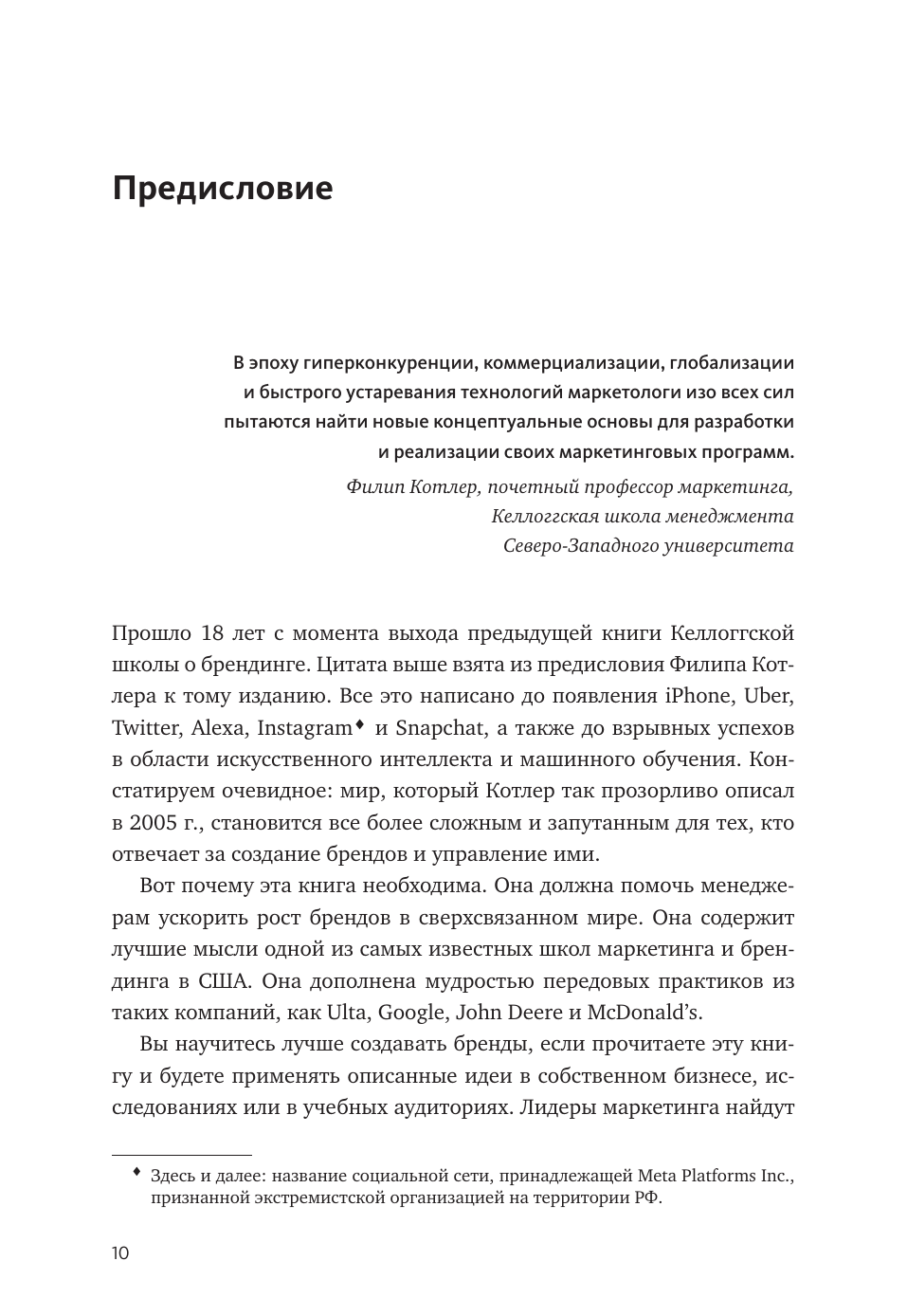 В этой книге собраны все аспекты создания сильного бренда и эффективного управления им. Теоретическая часть дополнена разбором бизнес-кейсов всемирно известных компаний, таких как Google, Apple, McDonald's, John Deere, Ulta и других. Авторы книги - преподаватели самой известной школы маркетинга и брендинга в США - Келлоггской школы менеджмента.