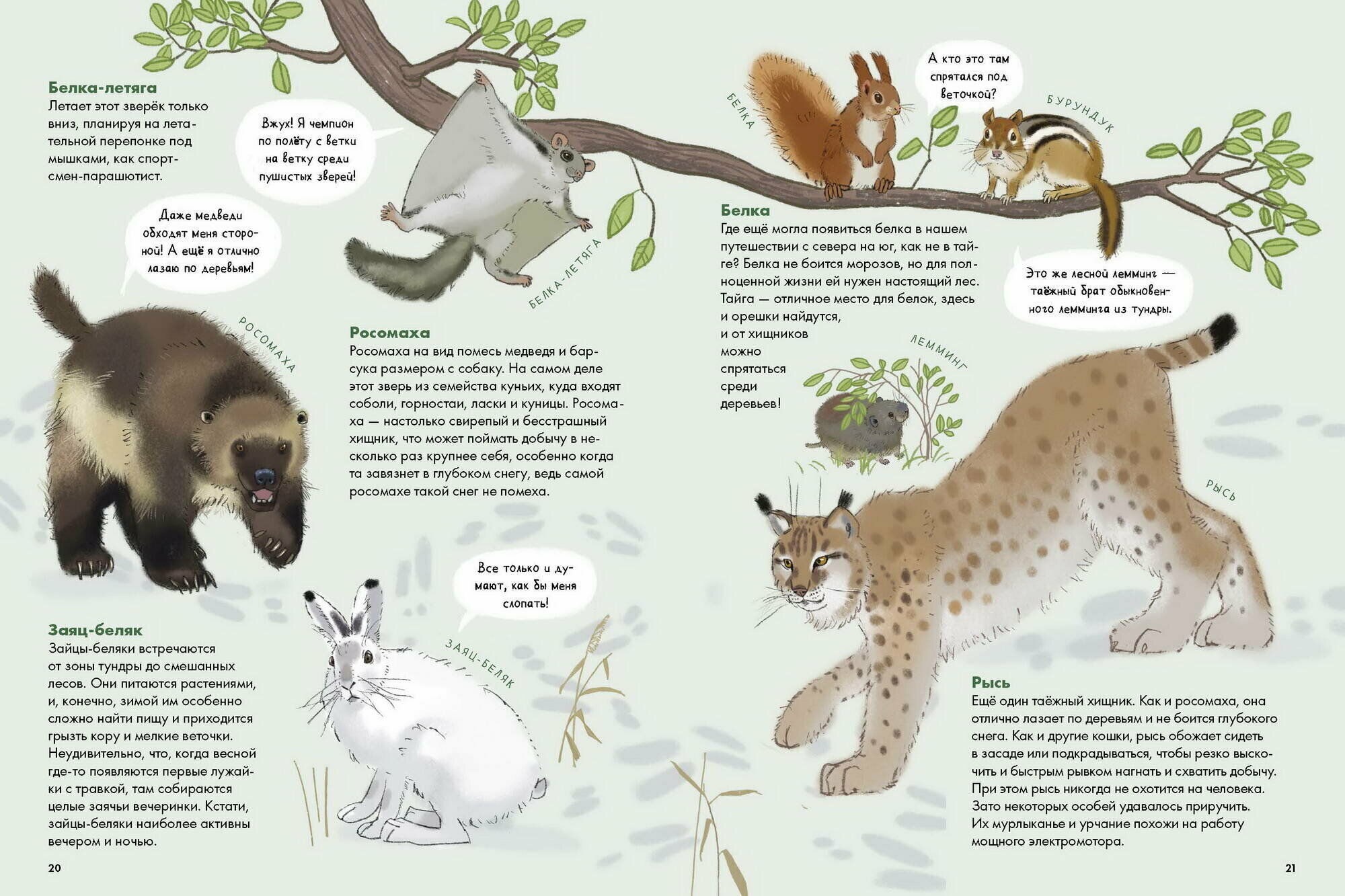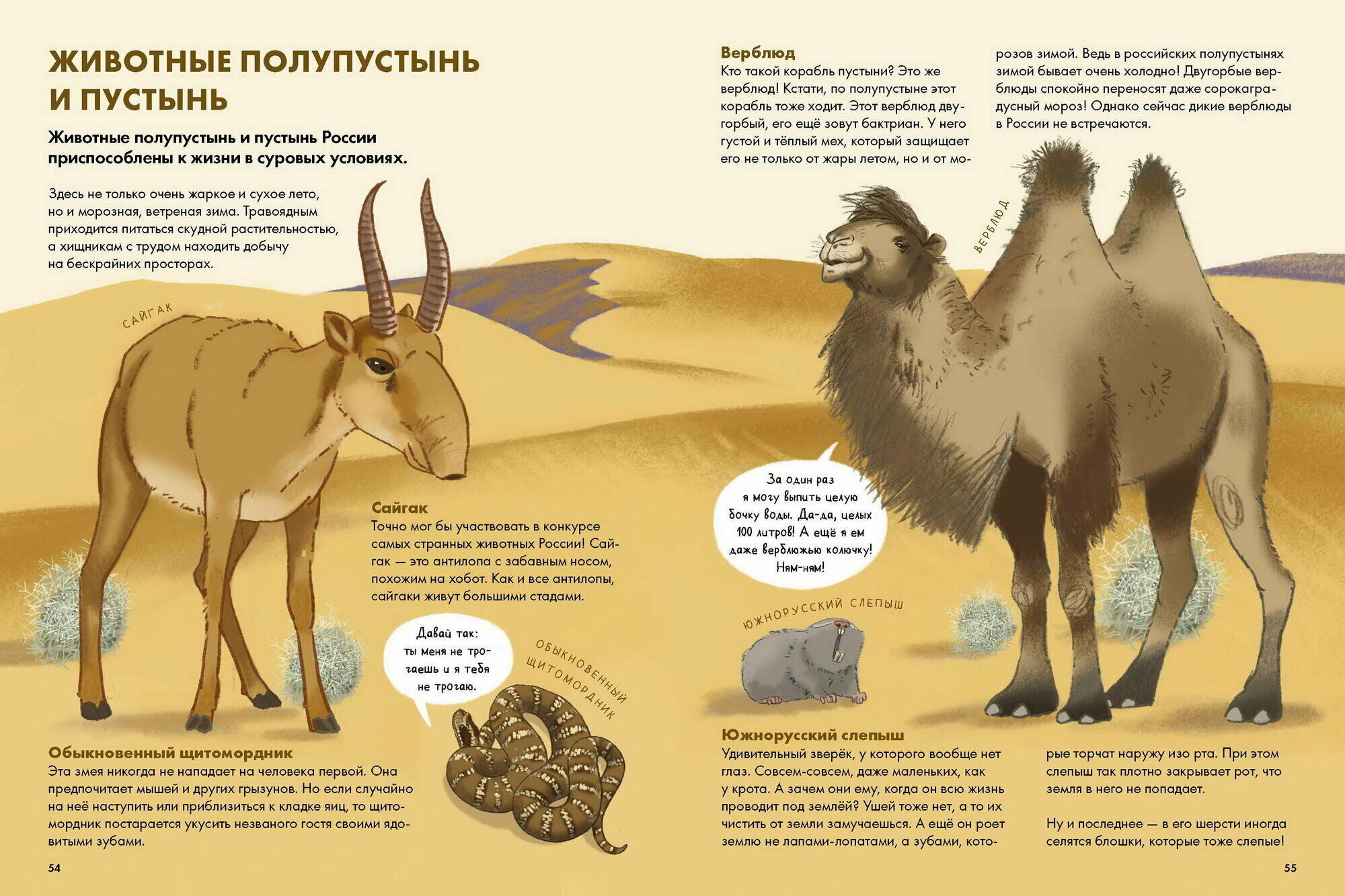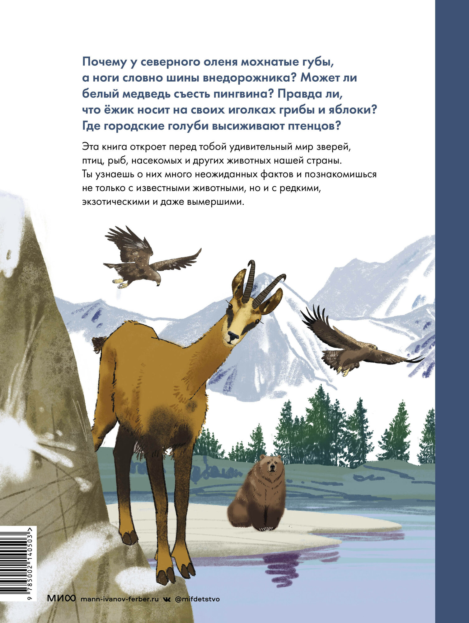 Книга большого формата о животных, которых можно встретить в России. На страницах этой книги юные читатели познакомятся с животными, которые обитают на территории России и узнают о них много необычных фактов. Встретятся в книге не только всем известные животные, но и те, о существовании которых знают не все. Кроме самих зверей есть описания природных зон, в которых они обитают. Настроение у книги весёлое. Звери в ней сами рассказывают о себе, поэтому читать её легко и увлекательно. Фишки книги — Красиво иллюстрированная книга с большим количество иллюстраций животных, которых можно встретить в России, и природы с комиксовыми вставками. — Совмещение популярного познавательного формата (атлас), формата комиксов и реалистичных изображений животных. — Нескучные рассказы об обычных животных, смешные, живые и понятные для ребенка. Для кого эта книга Для детей от 7 лет.
