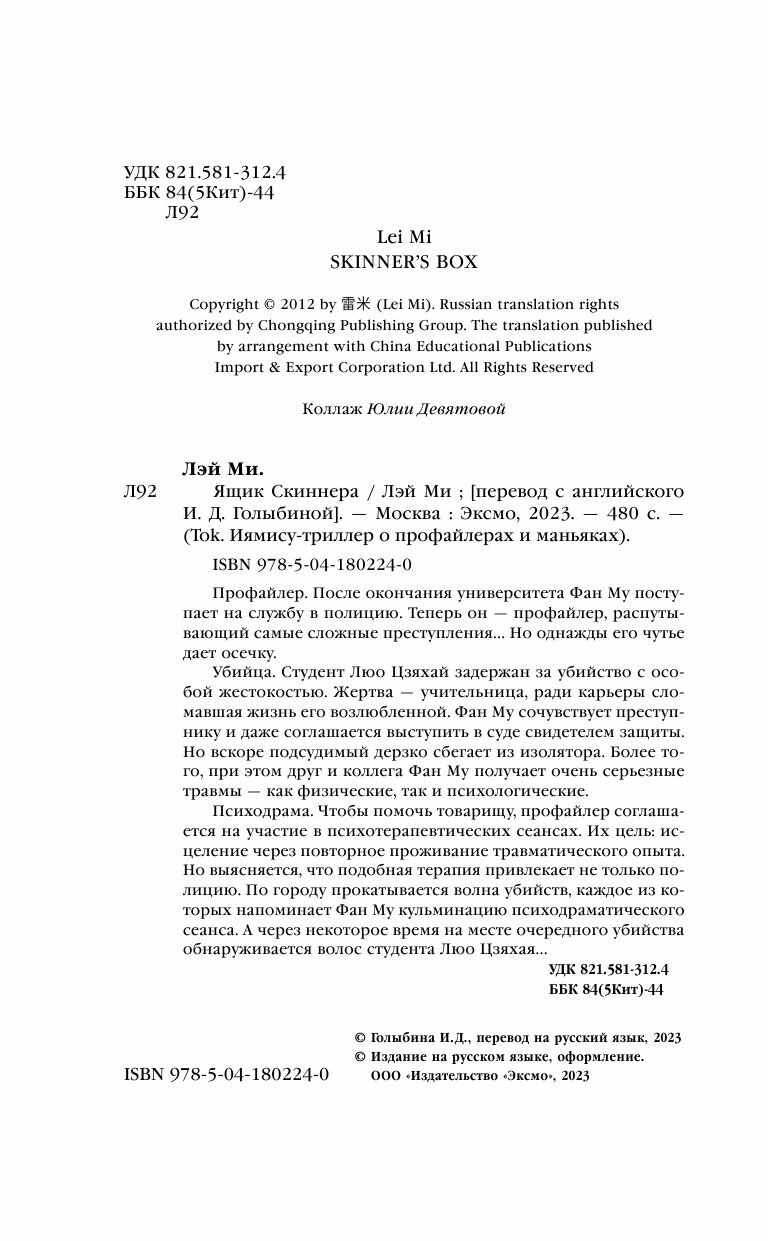 Книга: Ящик Скиннера (Лэй Ми); Эксмо, Inspiria, Редакция 1, 2024