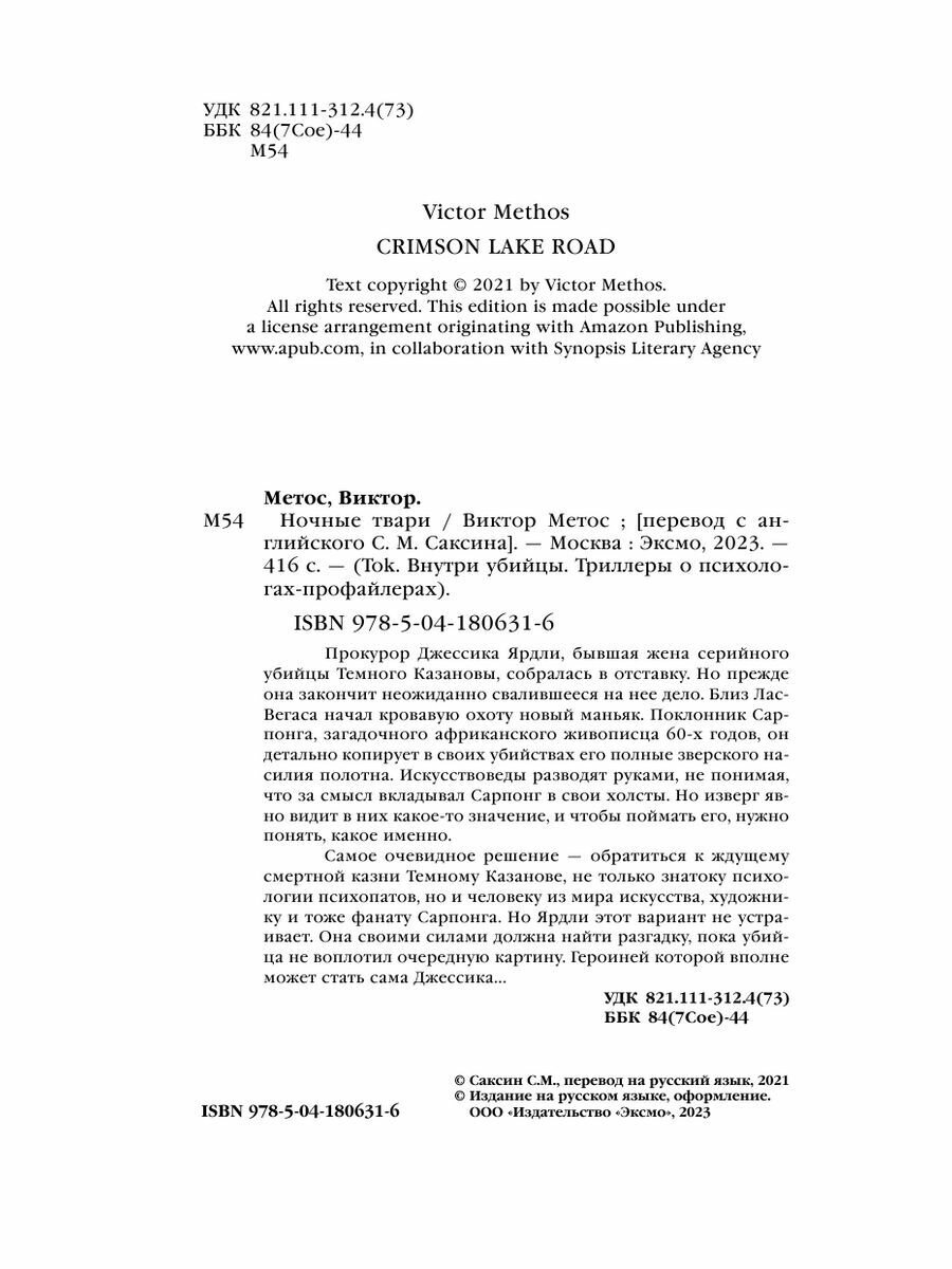 Книга: Ночные твари (Виктор Метос); Эксмо, Inspiria, Редакция 1, 2023