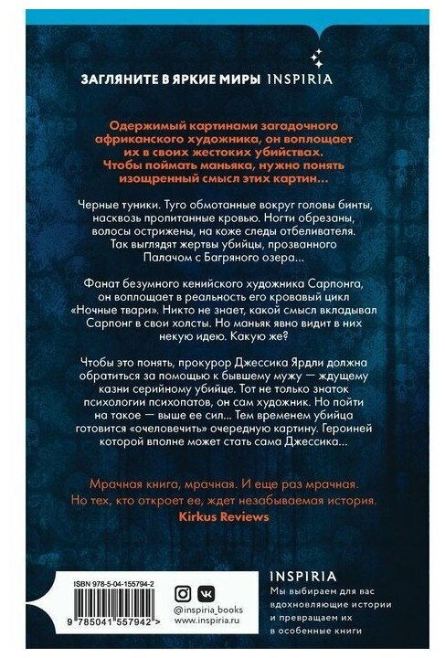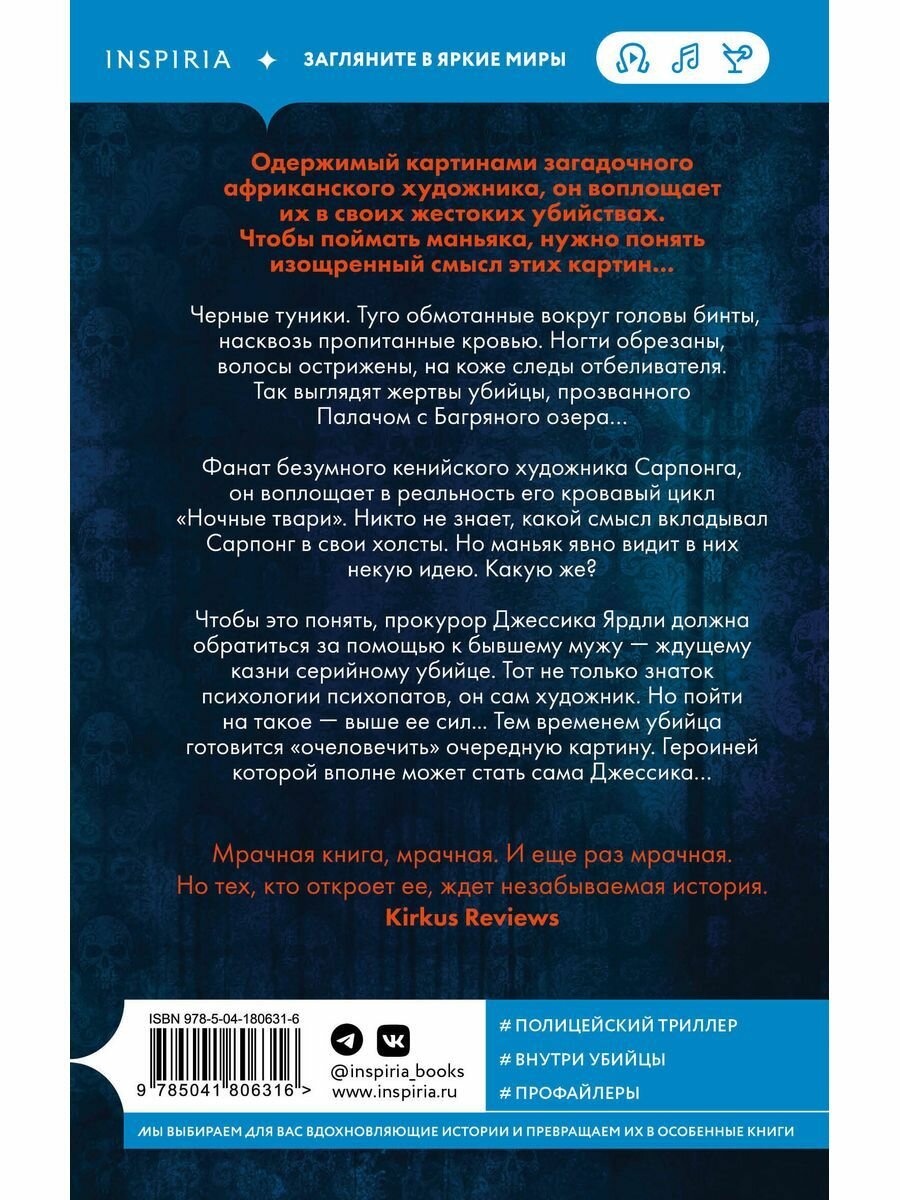 Фанат безумного кенийского художника Сарпонга, он воплощает в реальность его кровавый цикл "Ночные твари". Никто не знает, какой смысл вкладывал Сарпонг в свои холсты. Но маньяк явно видит в них некую идею. Какую же?
