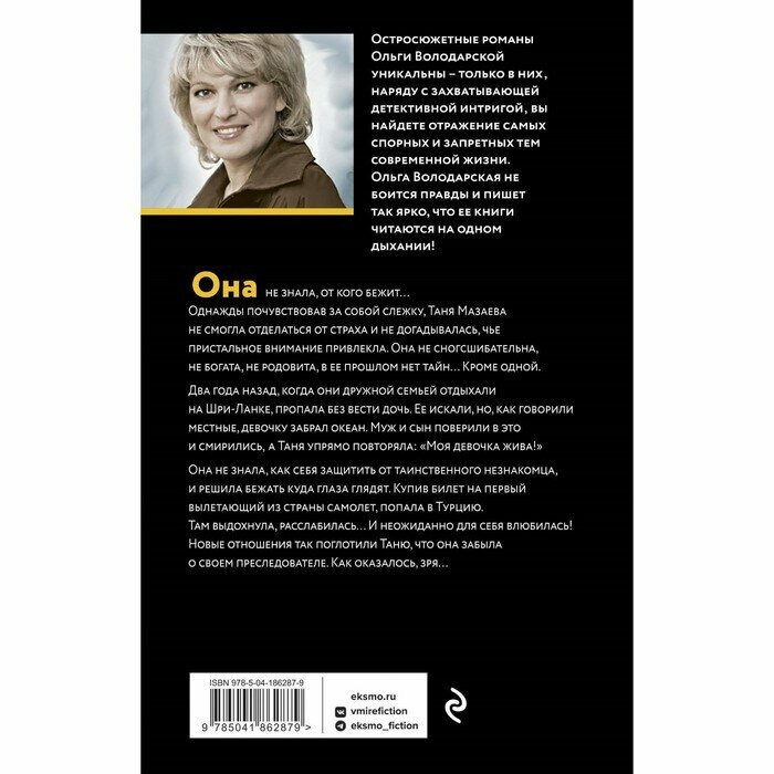 Остросюжетные романы Ольги Володарской уникальны — только в них наряду с захватывающей детективной интригой читатель найдет отражение самых спорных и запретных тем современной жизни. Ольга Володарская не боится правды и пишет так ярко, что ее книги читаются на одном дыхании!