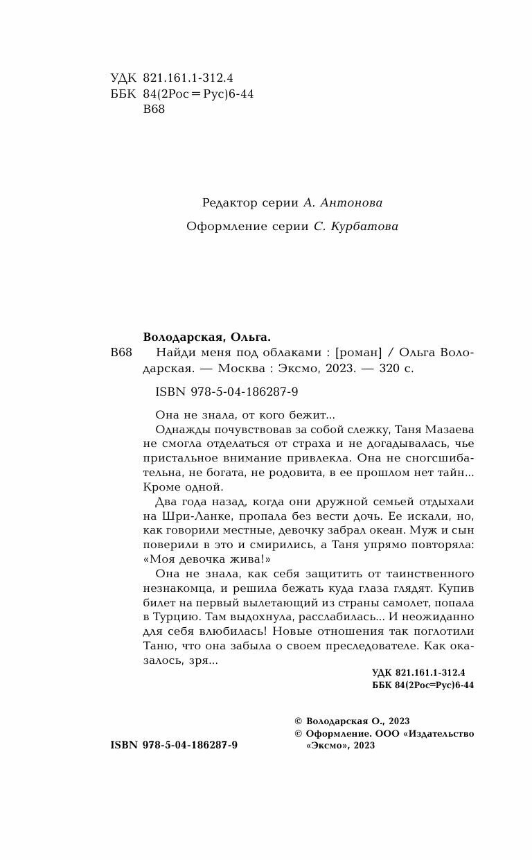 Книга: Найди меня под облаками (Володарская Ольга Геннадьевна); Эксмо, Редакция 1, 2023