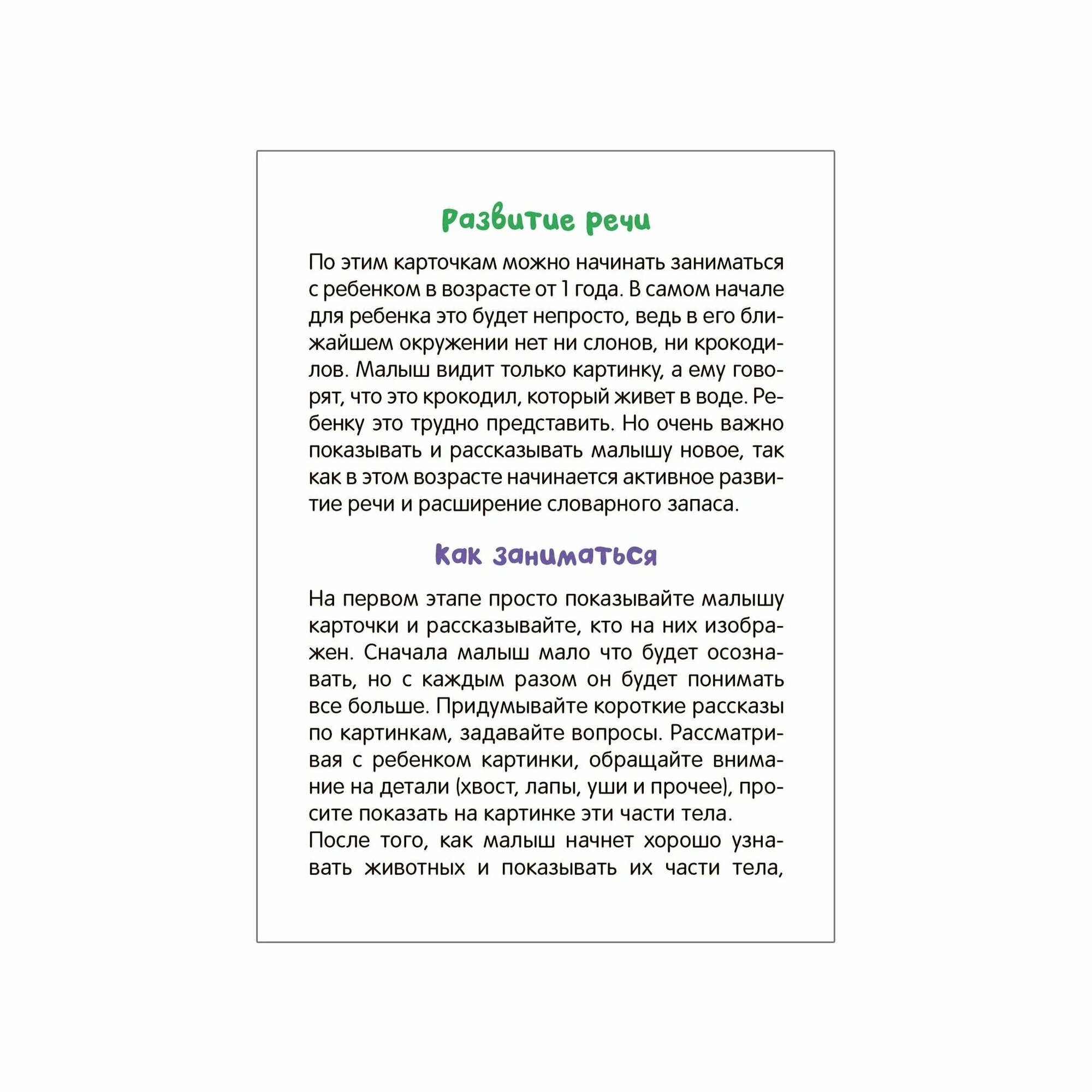 Набор карточек «Животные» серии «Развивающие карточки» прекрасно подходит для развития речи, мышления и расширения словарного запаса. В набор входит 15 двусторонних карточек. Всего 30 изображений диких и домашних животных.