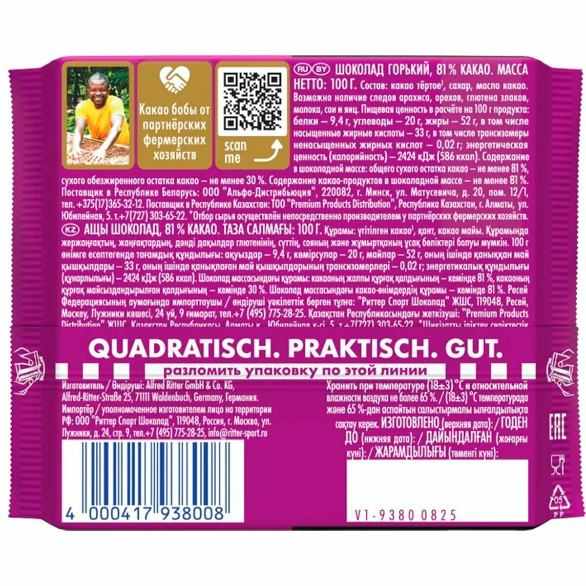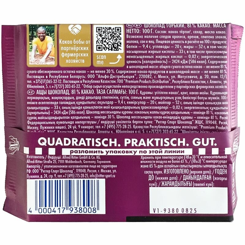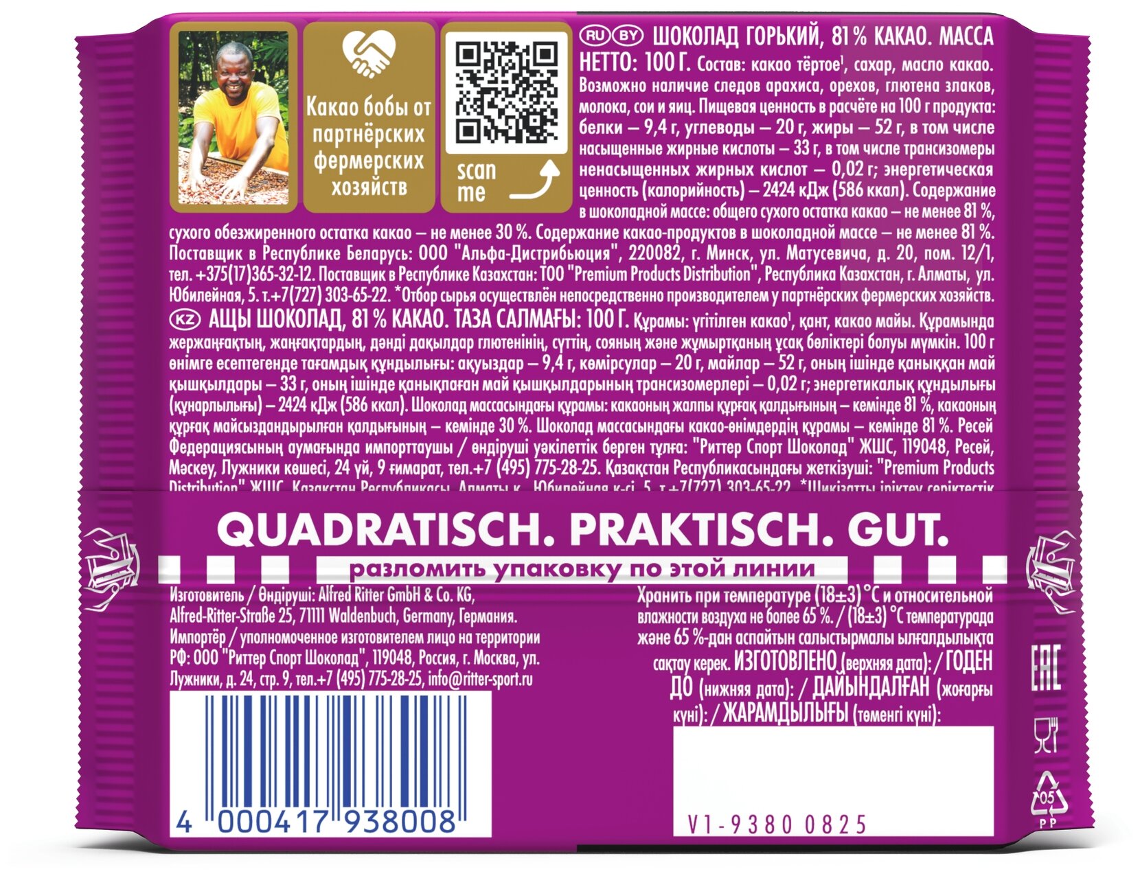 Шоколад Ritter Sport горький 81% 100г Риттер