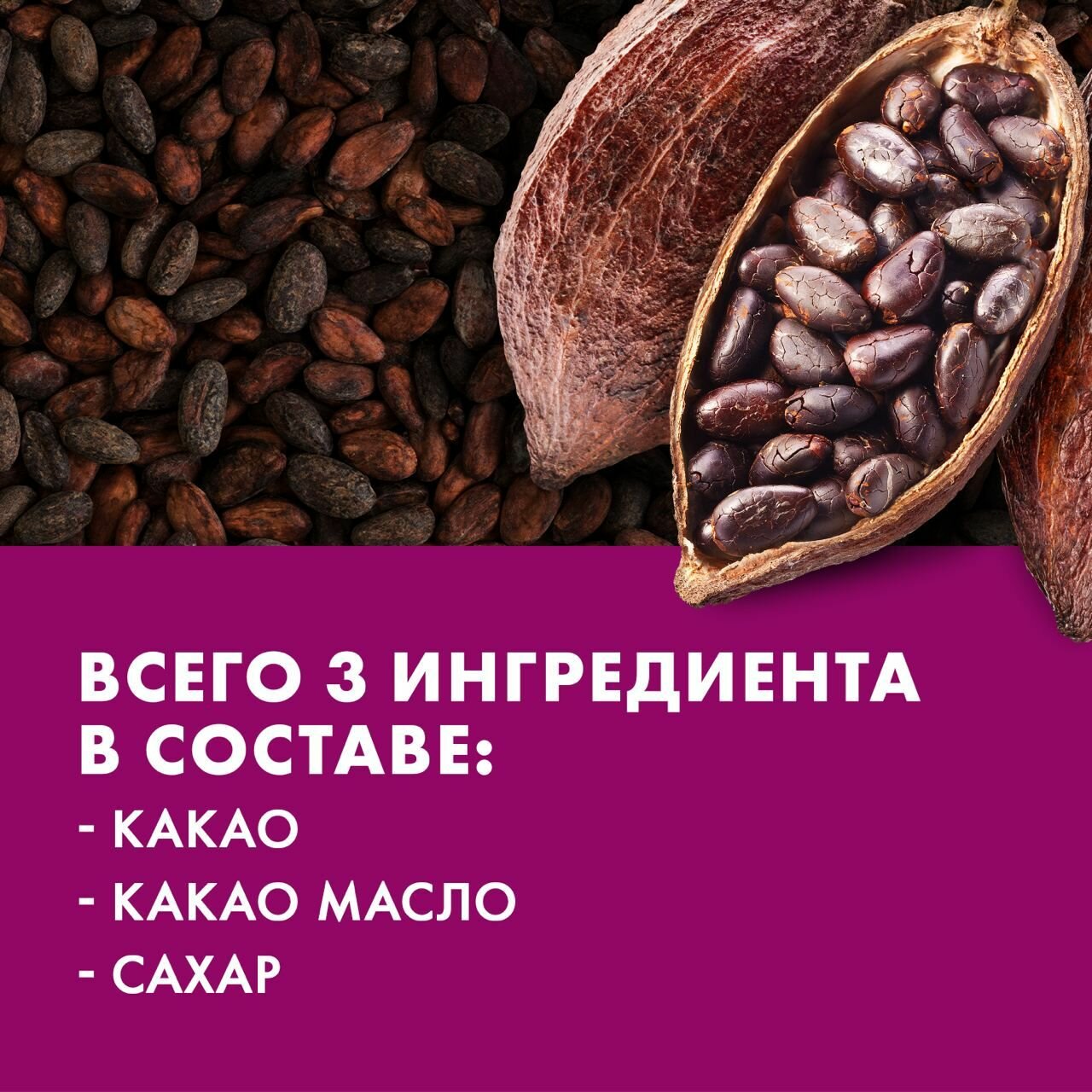 | Состав | какао тертое, сахар, масло какао |