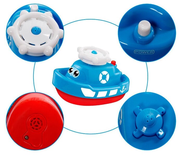 Веселое купание. Игрушка пластиковая для ванной. Катер, 3 вида в ассортименте (белый, красный, голубой). Размер упаковки (д/ш/в): 17x13,5x11,5 см. Работает от 2-х батареек типа ААА, не в комплекте. Предназначено для детей в возрасте от 1-го года.