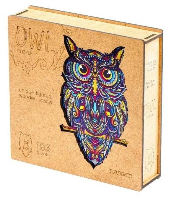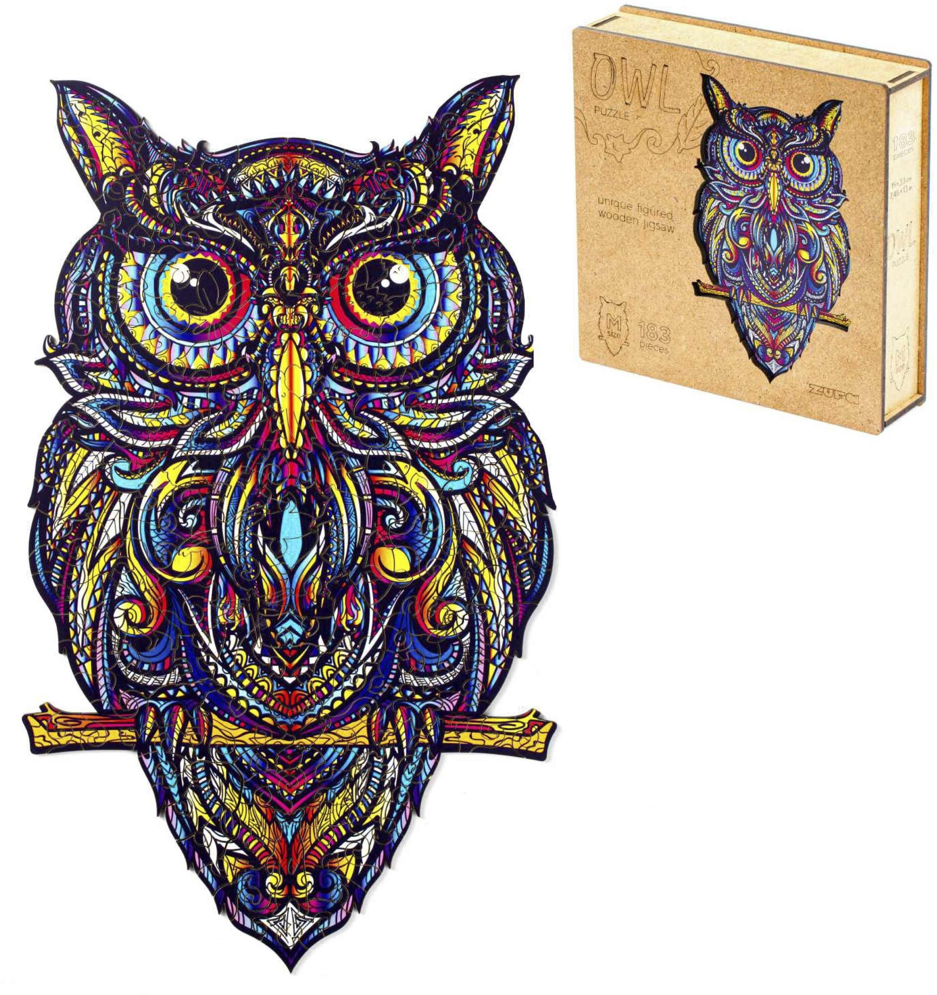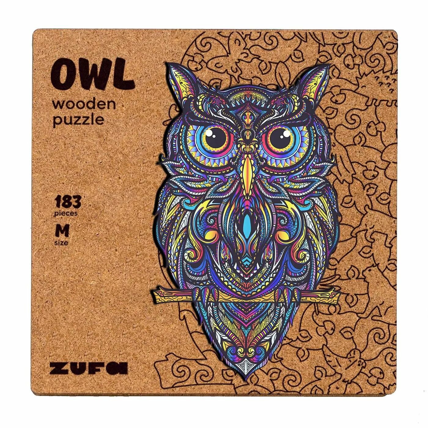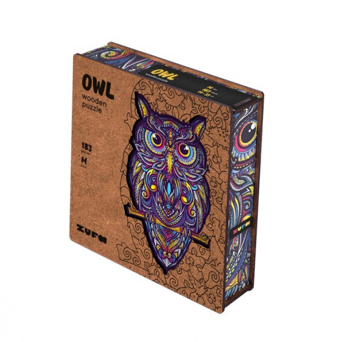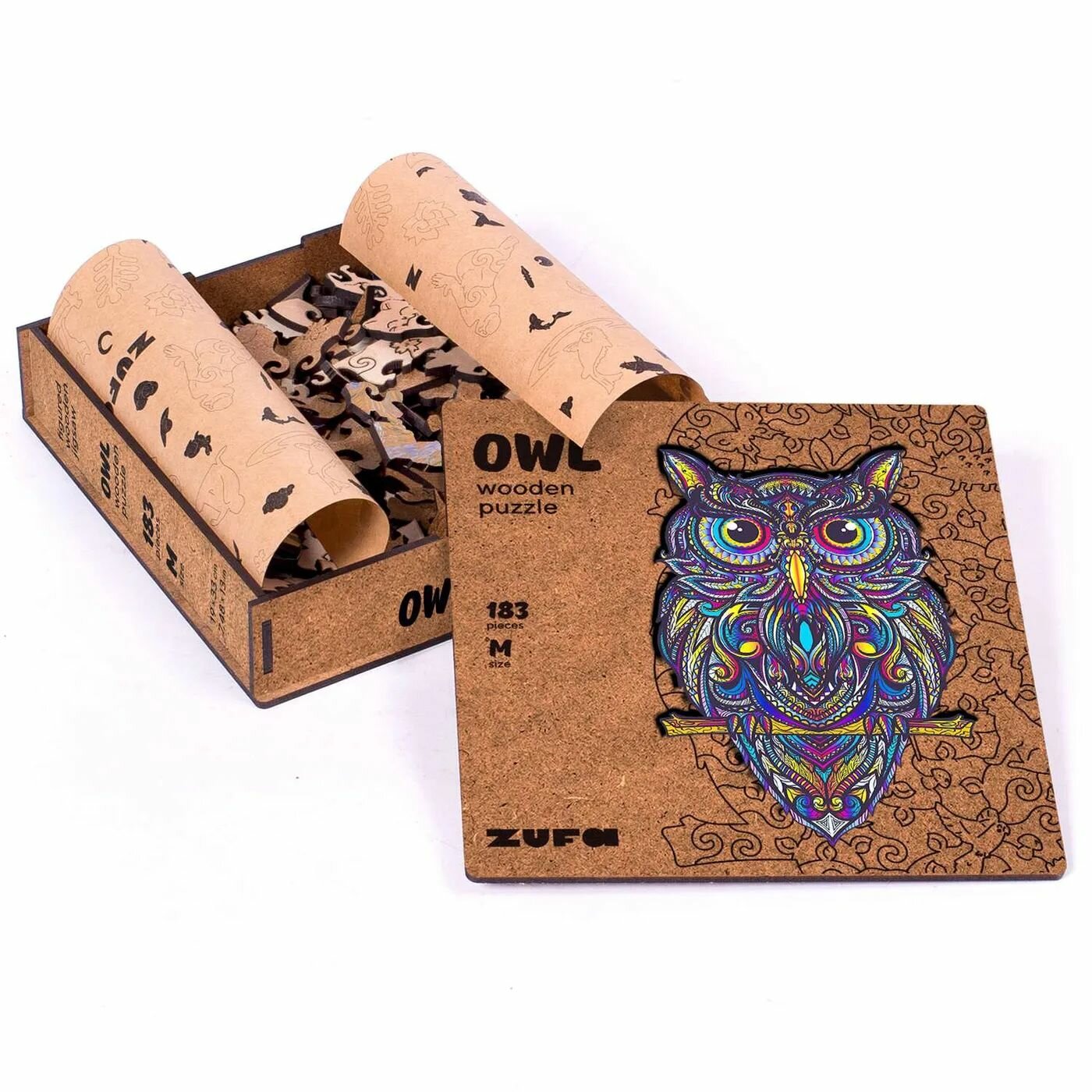 Деревянный пазл с двухслойной крышкой Сова 183 детали Zufa