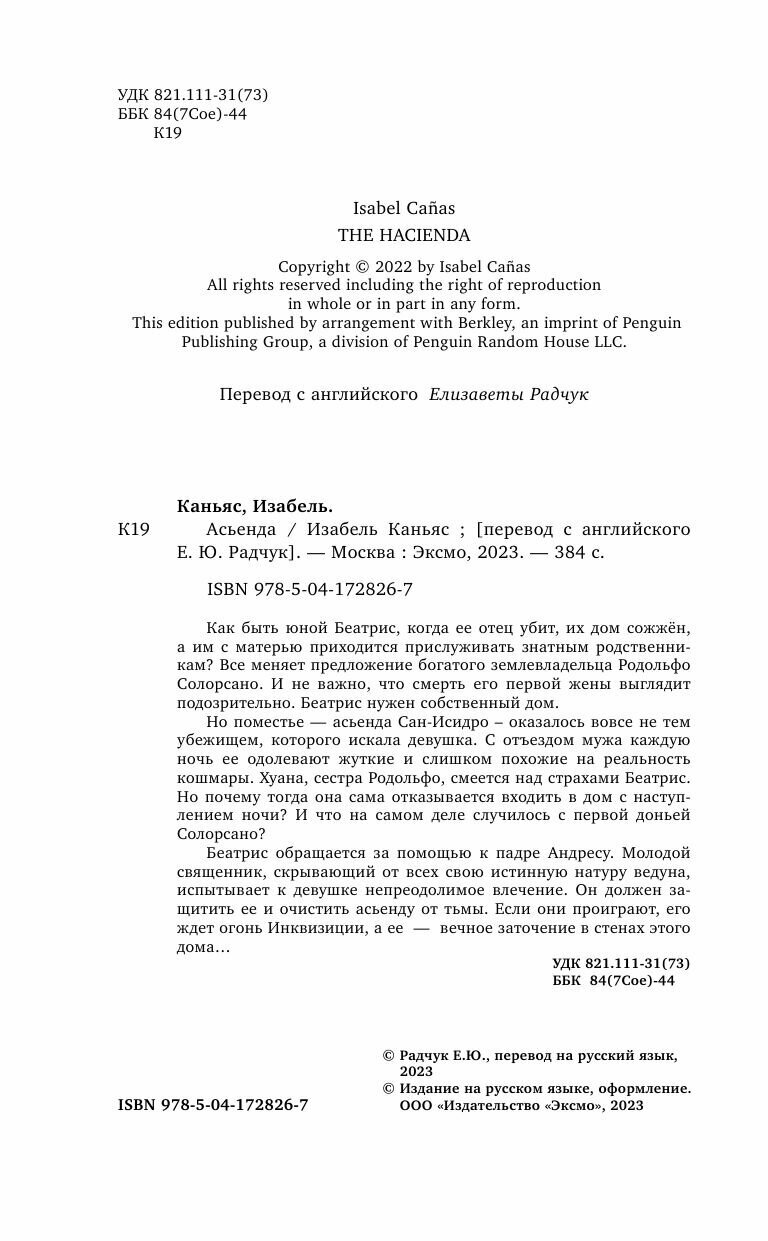 Книга: Асьенда (Изабель Каньяс); Эксмо, Inspiria, Редакция 1, 2023