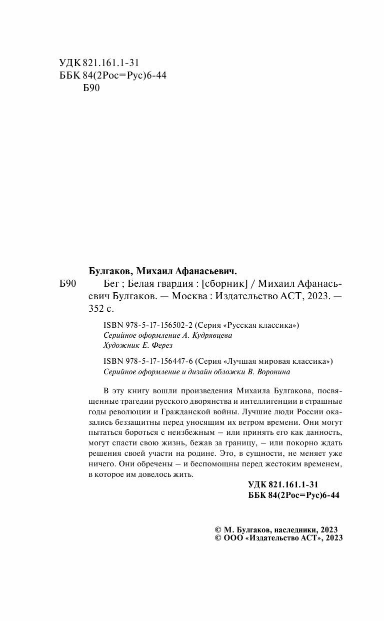 Книга: Бег. Белая гвардия (Булгаков Михаил Афанасьевич); ИЗДАТЕЛЬСТВО "АСТ", 2023