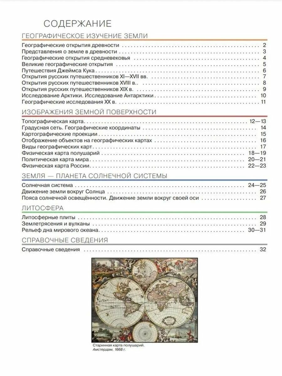 Атлас предназначен для учащихся 5-х классов общеобразовательных учебных заведений. В атласе отражены темы курса: история географических открытий, изображения земной поверхности, Земля —планета солнечной системы, литосфера. Работая с атласом, учащиеся научатся находить географические объекты, давать описания географическим объектам, уметь читать и анализировать карту. Переработанное издание соответствует требованиям Федерального государственного образовательного стандарта основного общего образования, утверждённого Приказом Министерства просвещения РФ № 287 от 31.05.2021 г. В издании обновлена последовательность карт в соответствии с содержанием примерной рабочей программой основного общего образования.