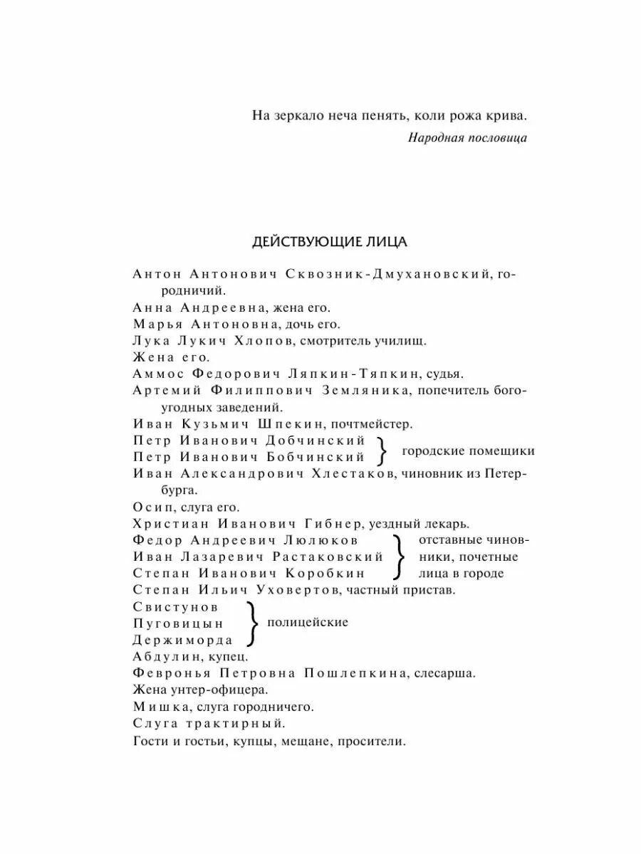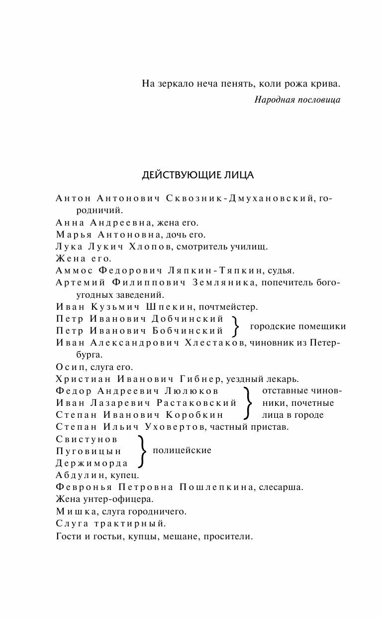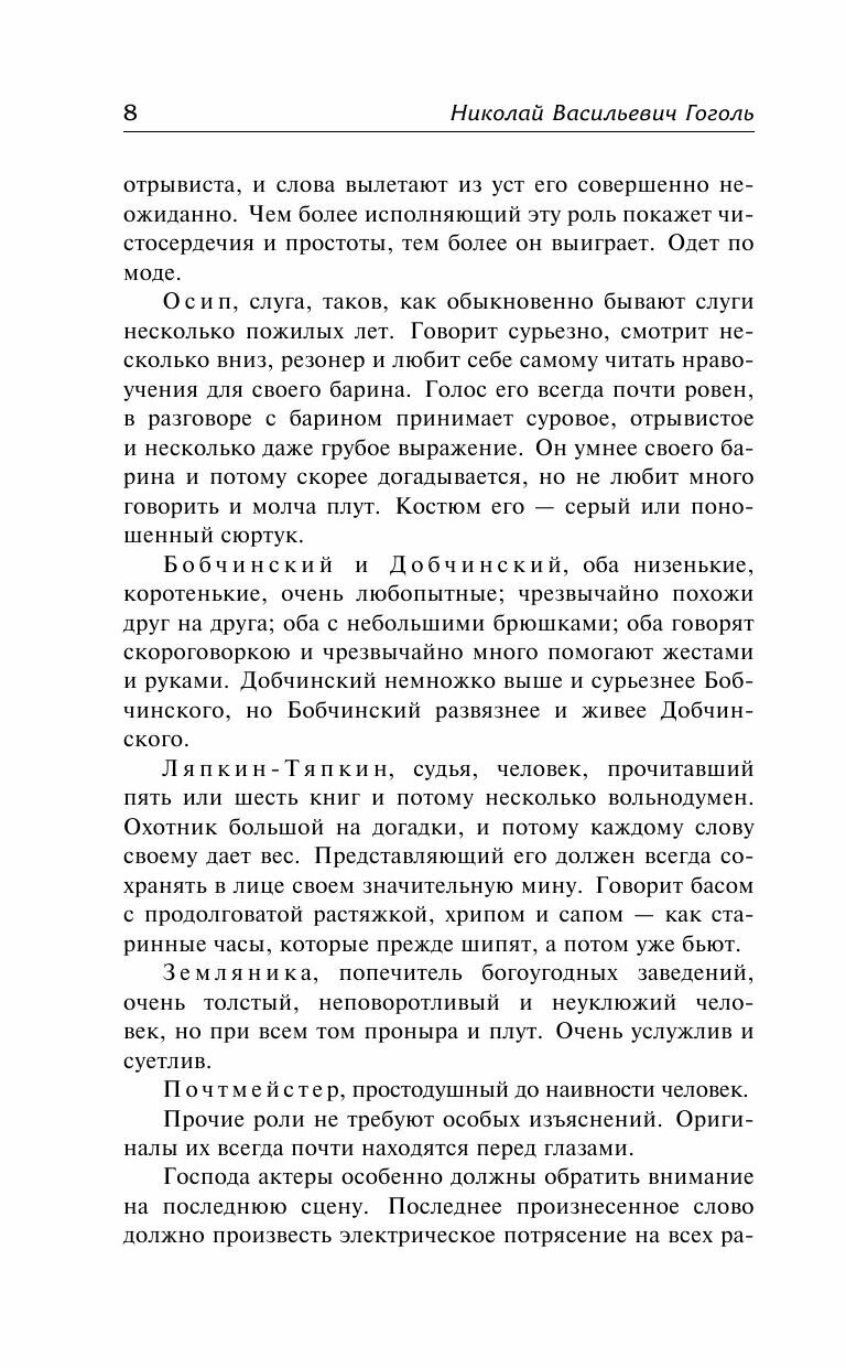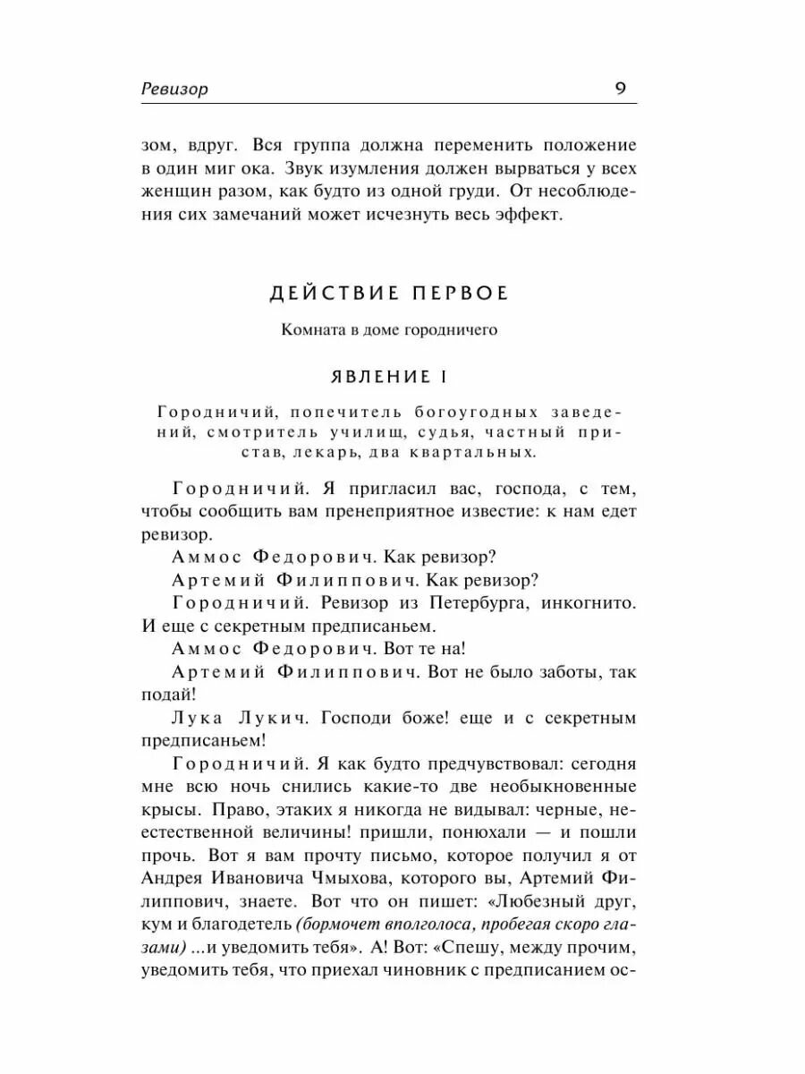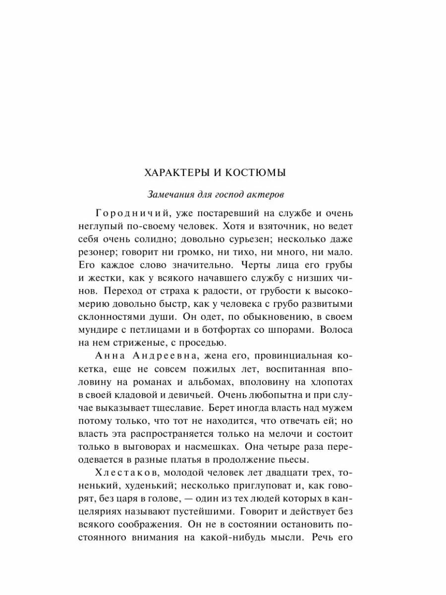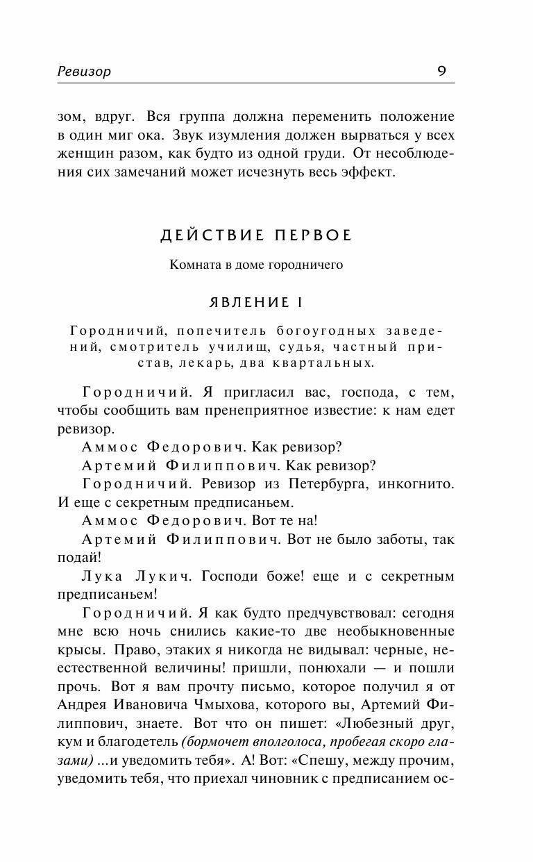 Пьеса на все времена. Покуда в нашем мире существует коррупция и чинопочитание, данная пьеса будет будет жить и считаться актуальной. Сюжет \"Ревизора\" достаточно прост, благодаря чему школьникам на уроке литературы достаточно просто понять смысл произведения. Юморной язык, комические и абсурдные ситуации так же способствуют легкому восприятию пьесы. Пару слов о самом издании: переплет твердый, листы газетные, шрифт комфортный.