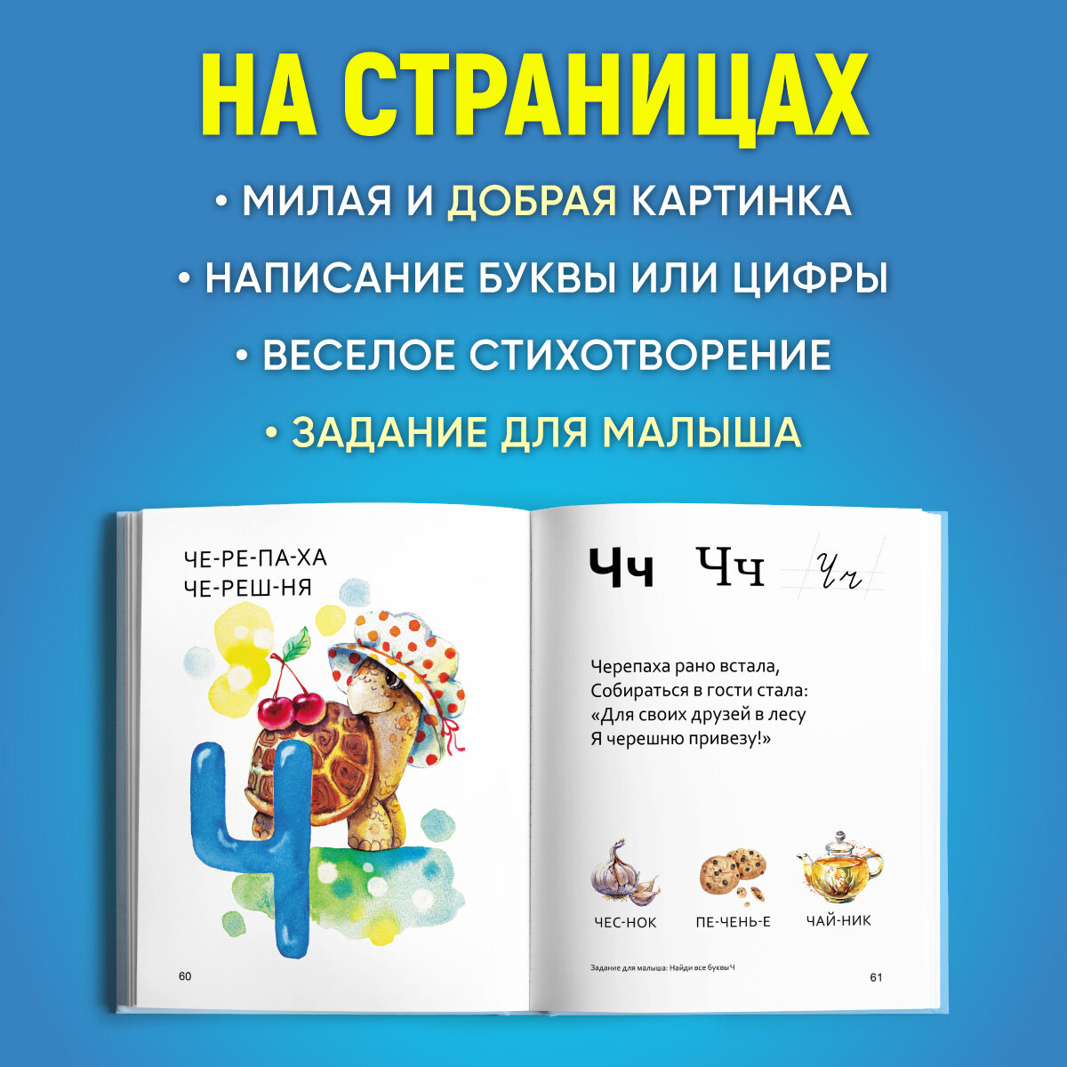 Книга поможет детям под чутким руководством мамы и папы легко и с интересом познакомиться с буквами и цифрами. Вэтом вам помогут милые и веселые зверушки, птички и букашки. Каждый персонаж расскажет свой стишок и даст задание для малыша.