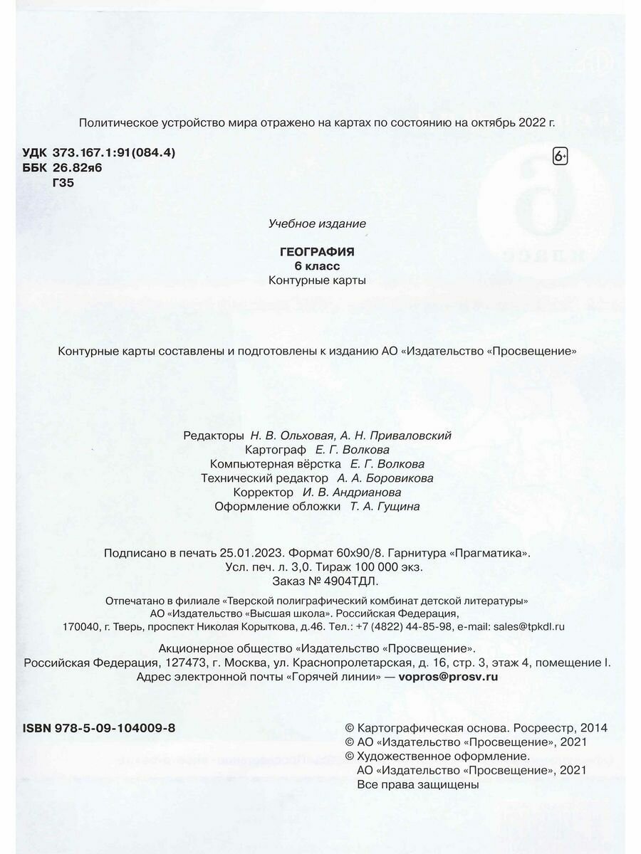 География. 6 класс. Контурные карты (Наталья Владимировна Ольховая, Алексей Никитич Приваловский); Просвещение, 2024