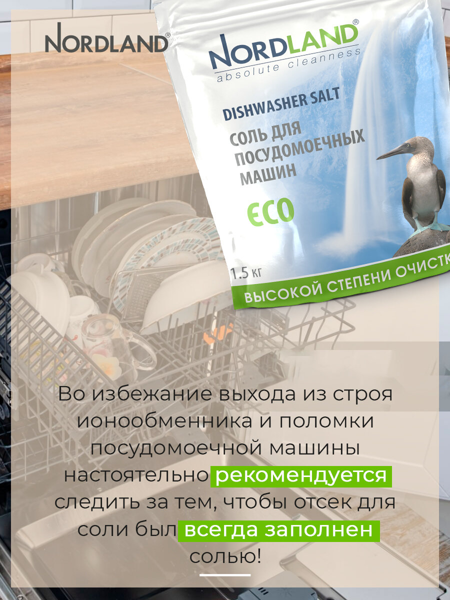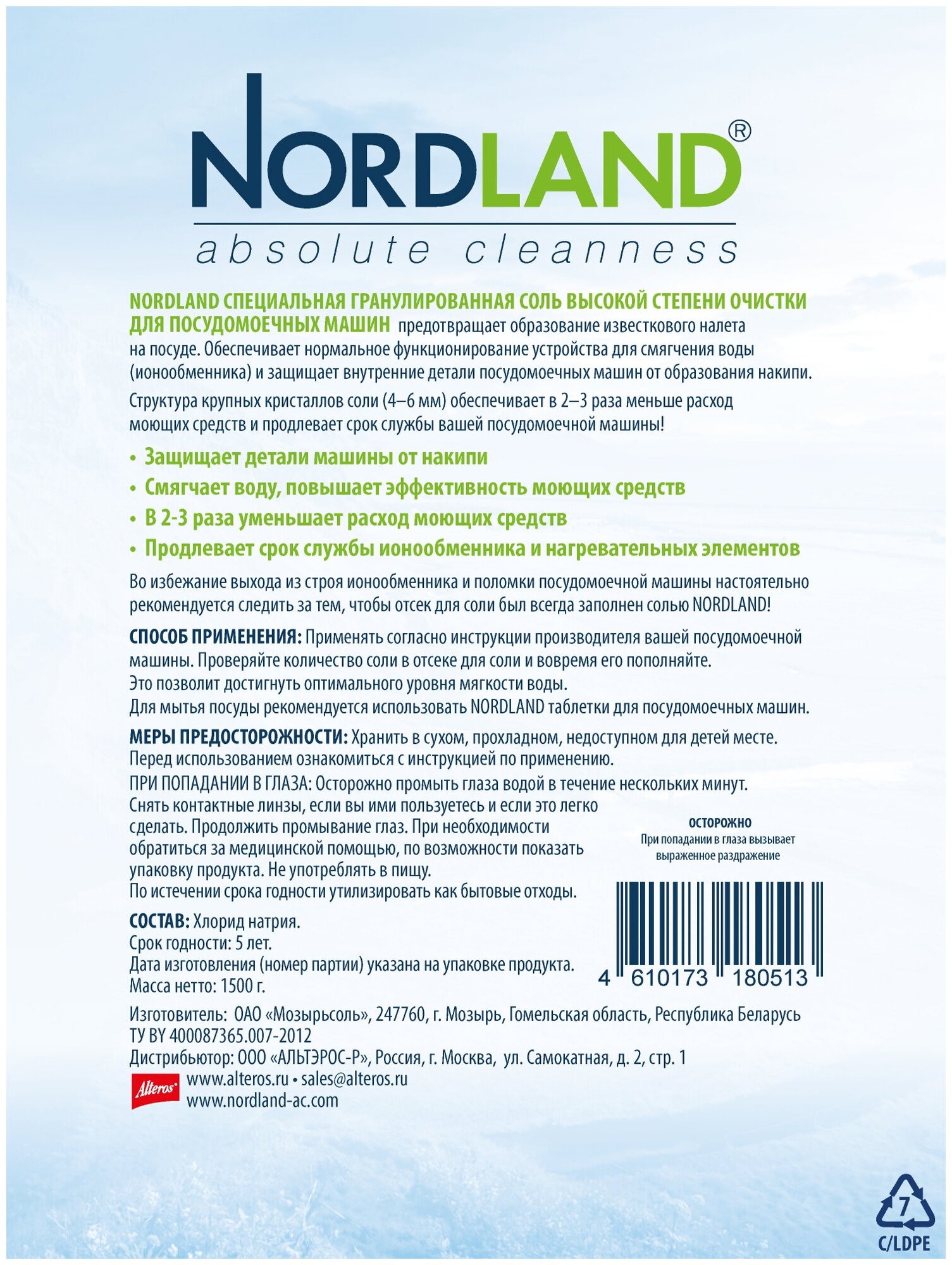 Соль для посудомоечных машин Nordland 1.5кг Мозырьсоль