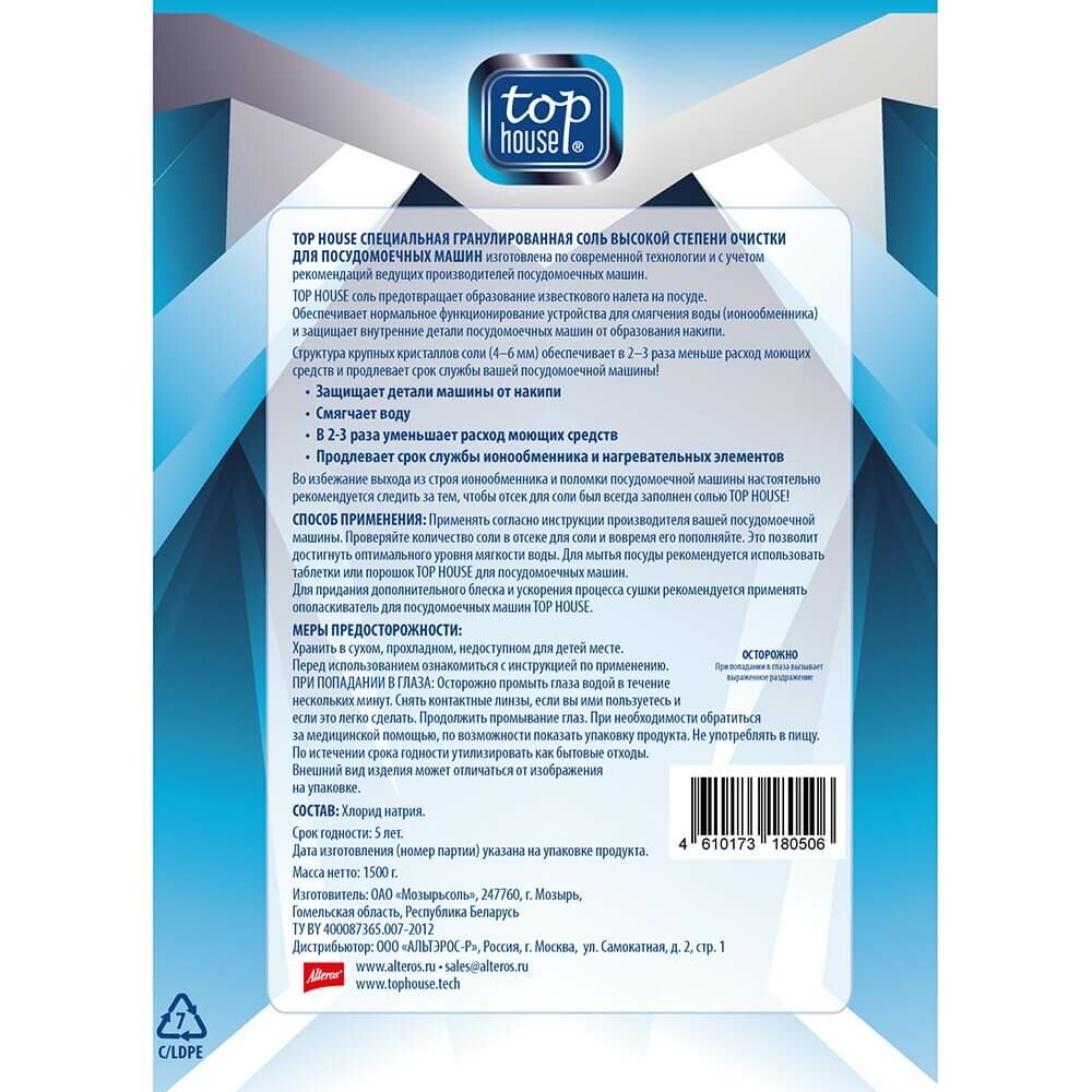 Соль для посудомоечных машин Top house 1.5кг Мозырьсоль