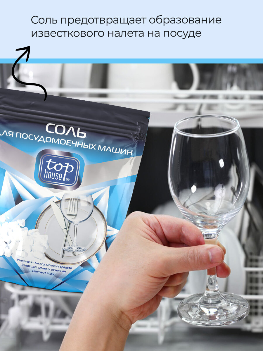 Соль для посудомоечных машин предотвращает образование известкового налета на посуде и защищает внутренние детали посудомоечных машин от образования накипи. Уменьшает расход моющих средств, смягчает воду и продлевает срок службы ионообменника и нагревательных элементов.