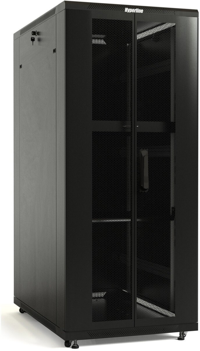 Шкаф напольный 19" 18U Hyperline 988x600х600 мм (ВхШхГ) передняя и задняя распашные перфорированные двери (75%) ручка с замком TTB-1866-DD-RAL9004 (размер: 18 U)