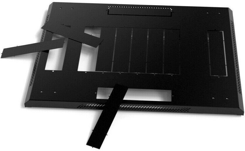 В крыше предусмотрены легкоудаляемые заглушки для установки кабельных вводов и вентиляторных модулей. Стандартной комплектацией предусмотрен один щеточный кабельный ввод для установки в верхнюю или нижнюю панель.