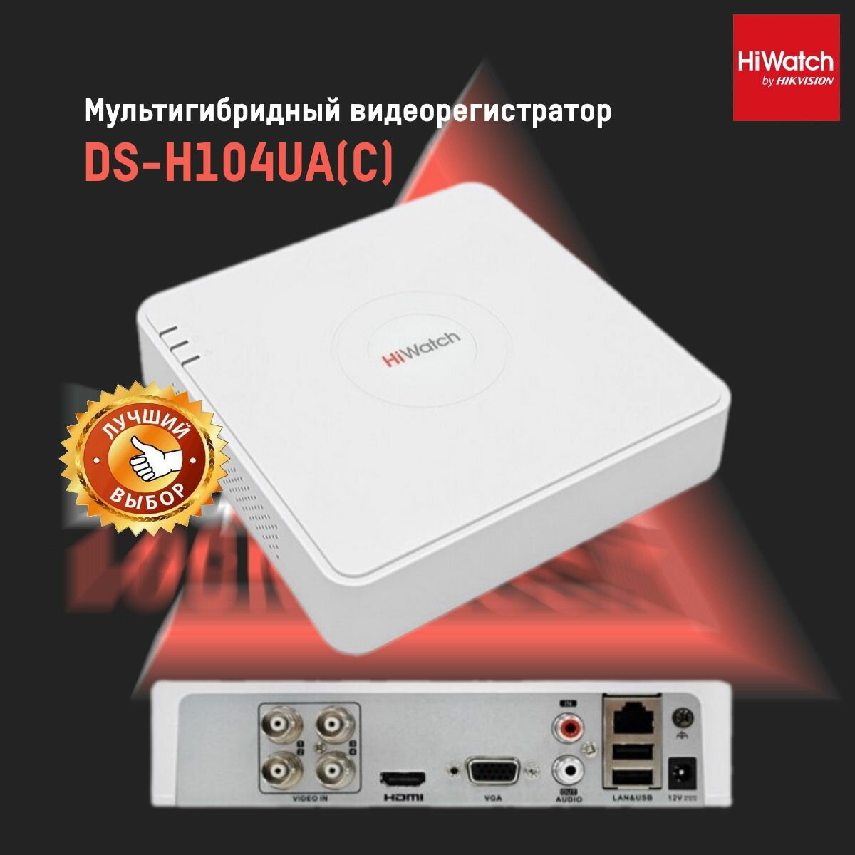 Видеорегистратор HiWatch 4-х канальный гибридный HD-TVI с технологией AoC (аудио по коаксиальному кабелю) DS-H104UA(C)