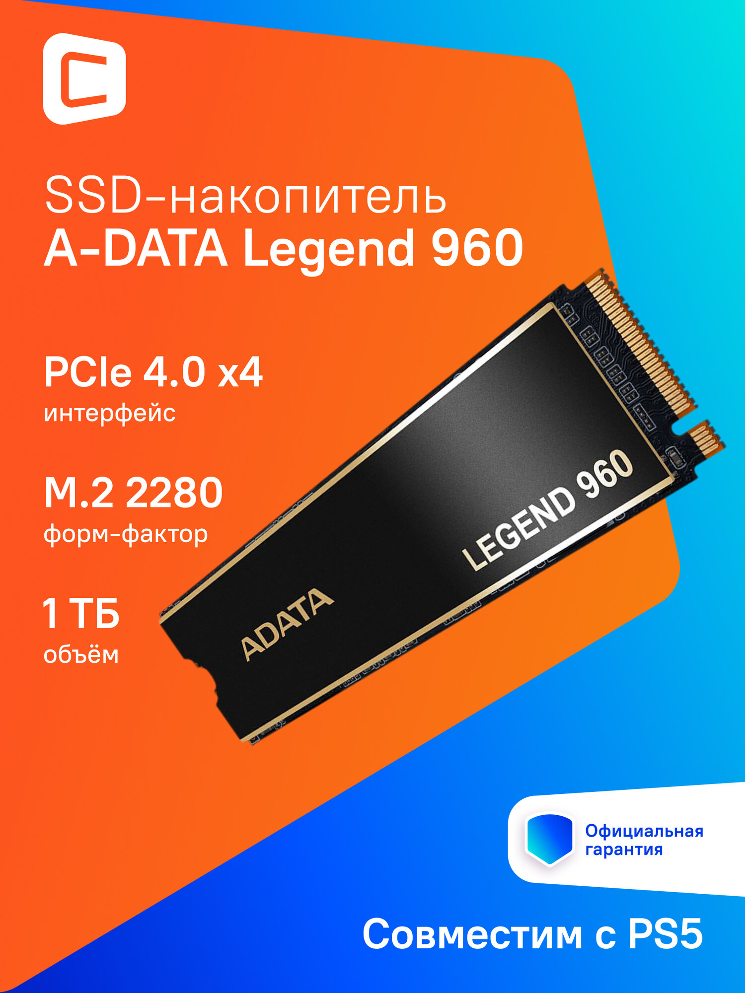 Сервис сравнения цен СкидкаГИД предлагает сравнить цены на товар «Накопитель SSD M.2 A-Data LEGEND 960 1TB PCIe 4.0 x4 3D NAND (ALEG-960-1TCS)»