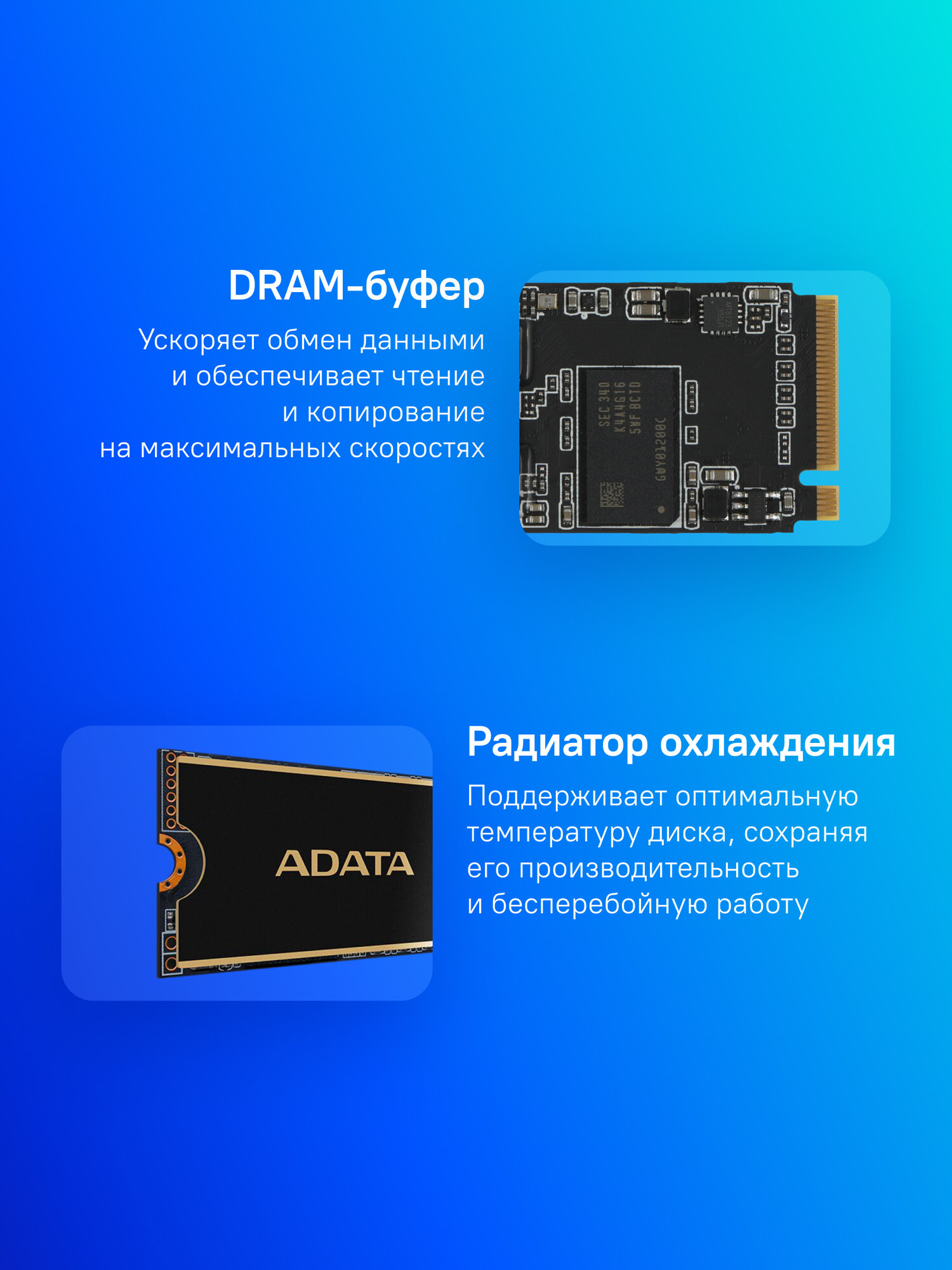 M.2 накопитель ADATA LEGEND 960 отличается совместимостью с платформами Intel и AMD. Компактное запоминающее устройство представляет собой универсальное решение для стационарных и портативных ПК. Благодаря объему 1000 ГБ можно хранить большое количество различных файлов. PCI-E 4.0 x4 с поддержкой стандарта NVMe и буфером DRAM гарантирует высокую производительность при запуске требовательных программ и игр. Скорость в режиме чтения достигает значения 7400 Мбайт/сек. В комплекте с накопителем ADATA LEGEND 960 поставляется радиатор для эффективного отведения тепла.