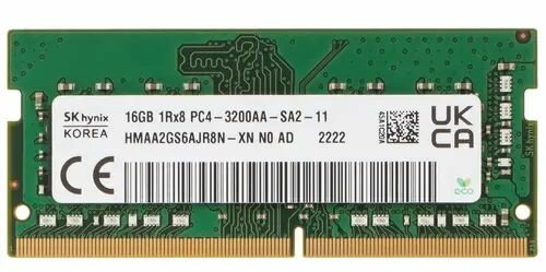 Оперативная память SODIMM Hynix [HMAA2GS6AJR8N-XN] объемом 16 ГБ позволяет увеличивать быстродействие компьютера. Модуль DDR4 с удвоенной скоростью передачи данных улучшает производительность ПК в отличие от устаревших SDRAM. Плата работает на частоте 3200 МГц с напряжением питания 1.2 В.
