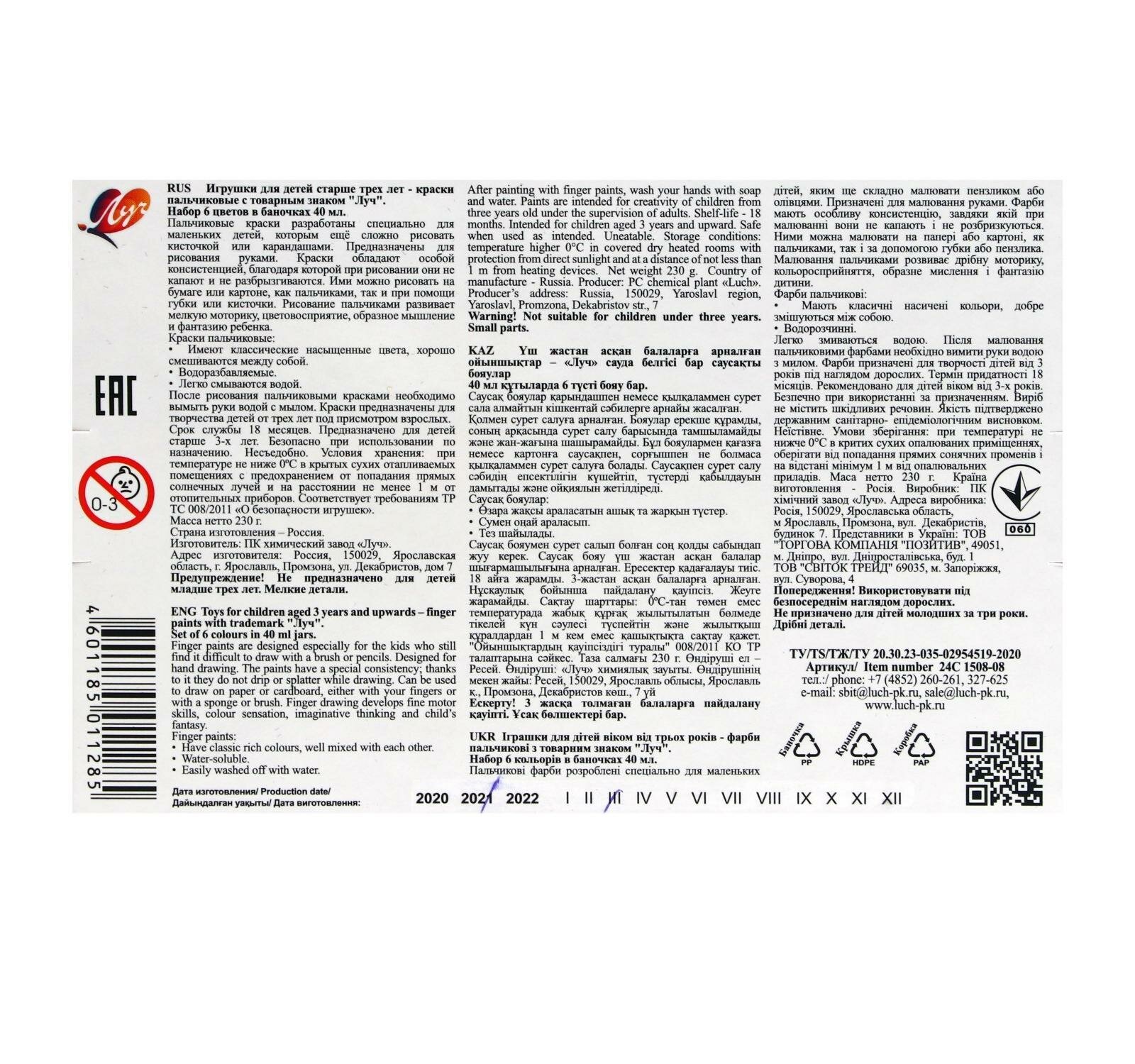 Тип товара: Краски для рисования пальцами