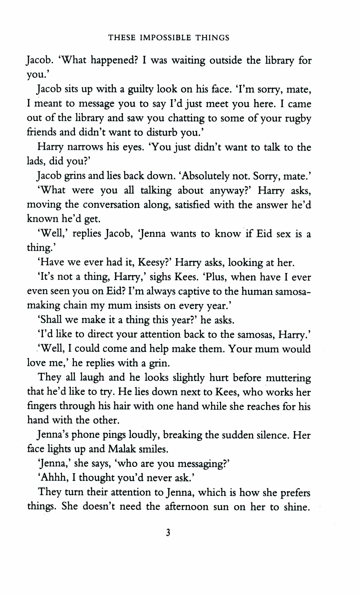 These Impossible Things charts the dreams and disappointments of a group of British Muslim women; Jenna, Kees and Malak. They have been friends for years: the three of them together against the world.
