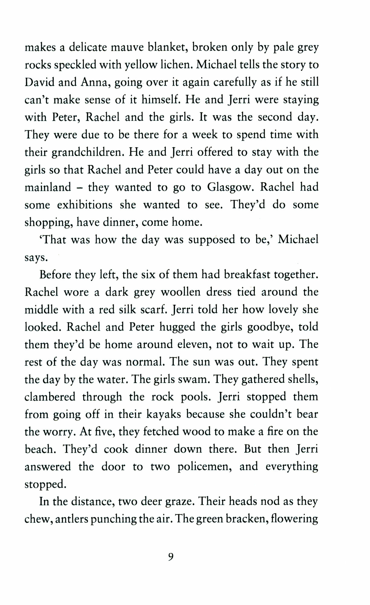 It's a beautiful place, the heather is in bloom, the birds wheel above the waves, the deer graze peacefully in the distance. But the large granite house is no longer a home for the girls, and Anna knows she can never take the place of their mother. Then David invites his friend to stay, to 'ease them through' and Anna finds herself increasingly isolated, with everything she - and the girls - once knew of life discarded and overruled by a man of whom she is deeply suspicious.