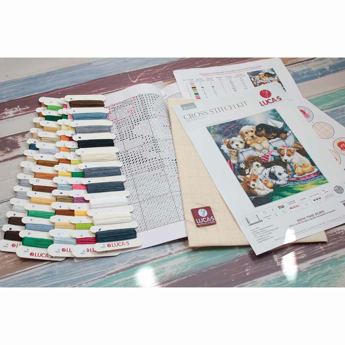 Набор 'Щенки во время купания' – выбор для ценителей очаровательных сюжетов. Яркие мулине словно подобраны опытным художником, который мастерски работает с цветом, а схема проработана детально и точно. Издалека вышивка как будто нарисована на холсте!Сосредоточьтесь на творчестве, а Luca-S позаботится о мелочах!– Канва с разметкой поможет вышивать быстро и лучше организовать свою работу.– Органайзер с разложенными по цветам нитками и условными обозначениями поможет быстро выбрать нужный оттенок. – Фирменные мулине Luca-S не выцветут, не порвуются и обеспечат аккуратные стежки.Мелкая сетчатая канва Aida 16 позволяет вышивать с филигранной точностью. Чтобы меньше уставать и не допускать ошибок, обеспечьте яркое освещение, а для работы над мелкими деталями используйте увеличительное стекло.В наборе: канва Aida 16 бежевая (разлинованная), хлопковое мулине Luca-S, игла №26 – 2 шт., двухцветная символьная схема, инструкция.Количество цветов: 57.