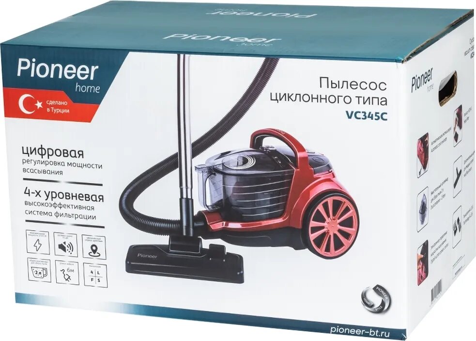 | Пылесос Pioneer VC345C с мотором повышенной эффективности и увеличенным радиусом действия отлично подойдет для эффективной и быстрой уборки любых помещений. 3-ступенчатая система фильтрации гарантирует очистку даже от мельчайших частиц пыли. Пылесос оснащен металлической телескопической трубкой и широким набором насадок | универсальная щетка ковер/пол, щетка для твердых полов, щелевая насадка и насадка для мебели. На корпусе расположен поворотный регулятор мощности всасывания. Длины кабеля (6 метров) достаточно для свободной уборки помещения до 9 метров. Уход за пылесосом предельно прост: моющиеся фильтры промываются холодной водой, а мусор из контейнера объемом 2 литра вытряхивается в мусорное ведро. Для компактного хранения предусмотрена вертикальная парковка пылесоса. |
