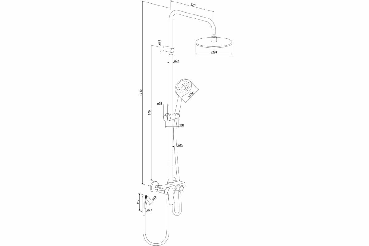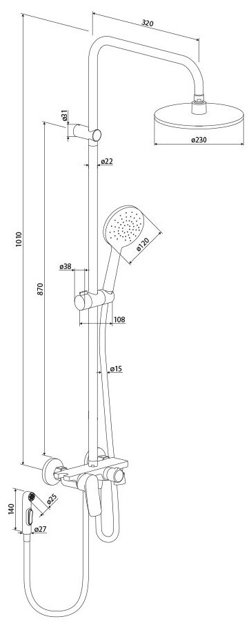 | Комплект поставки | Смеситель, держатель душа, кронштейн для верхнего душа, настенный держатель |