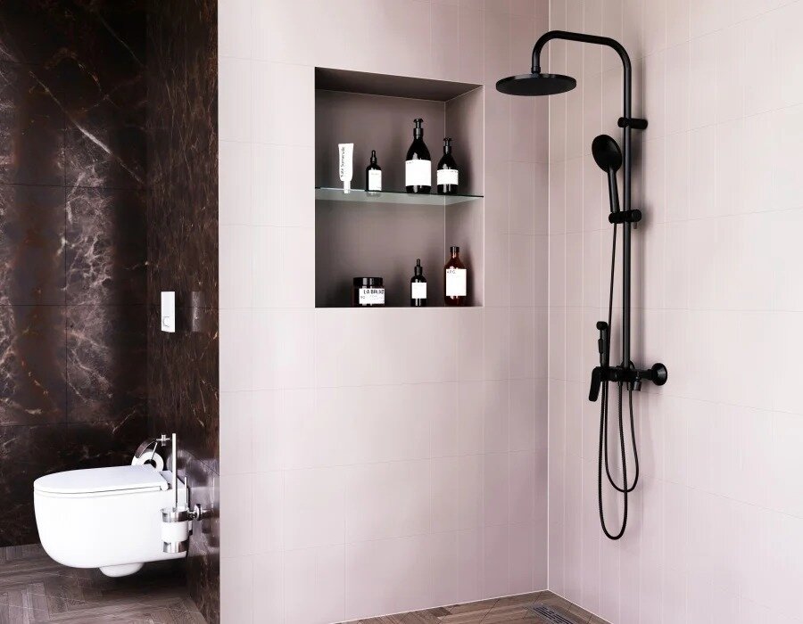 977770300 Jupiter, ДС с ванно-душевым смесителем-полкой и гиг.душем, черныйУльтра черная матовая душевая система станет центром притяжения ванной комнаты. Наличие нескольких аксессуаров в одном решении значительно сэкономит ваше время и средства. Душевая система оснащена: смесителем-полочка для хранения средств многорежимный поворотный излив гигиенический душ а также ручной душ и верхний тропический душ – целый комплекс для комфортного spa-ухода. Увеличенные душевые лейки позволят полностью насладиться душевыми процедурами - взбодриться утром и расслабится вечером. Длина душевой штанги составляет 1010 мм ее можно установить на любой высоте и комфортно пользоваться душем людям любого роста. Специальная разработка бренда damixa в виде керамического картриджа Light Flow позволяет плавно управлять ручной смесителя тем самым держать под контролем температуру и напор воды. Мы рекомендуем устанавливать душевой набор только в душевых ограждениях.