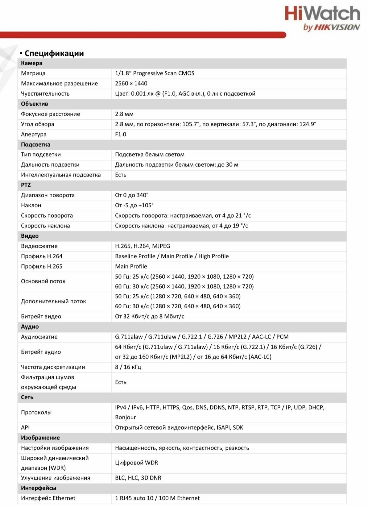 | Основной поток | 50 Гц:25 к/с (2560 × 1440, 2048 × 1536, 1920 × 1080, 1280 × 960, 1280 × 720) / 60 Гц:30 к/с (2560 × 1440, 2048 × 1536, 1920 × 1080, 1280 × 960, 1280 × 720) |