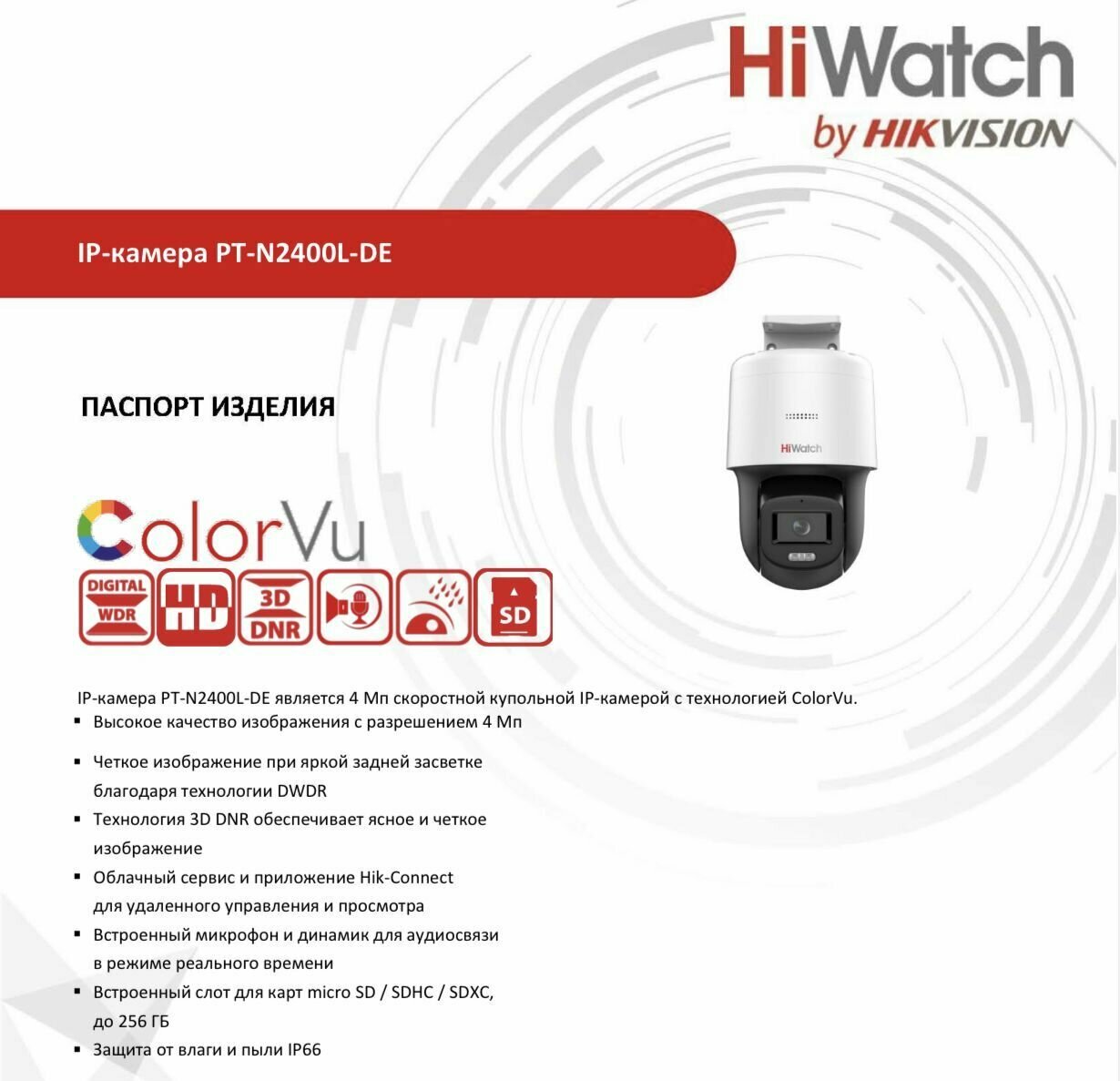 | Тип товара | IP-камера |