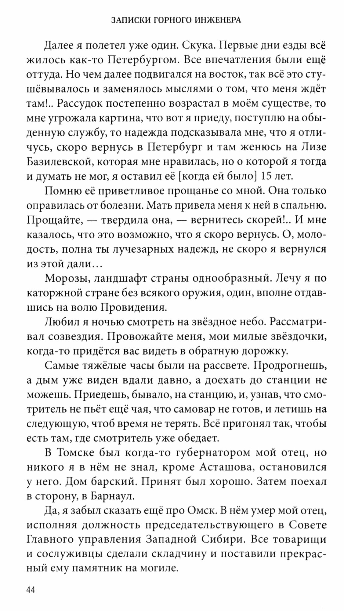 Составленные в 1880 году «Записки» охватывают события со второй половины 1830-х годов до 1874 года. Автор освещает свои взгляды на геологические основы и методику поисков золотых россыпей, события и впечатления от жизни в Париже и Петербурге, работы в составе геологических поисковых партий на побережье Охотского моря, в окрестностях Иркутска и в дальневосточной тайге.