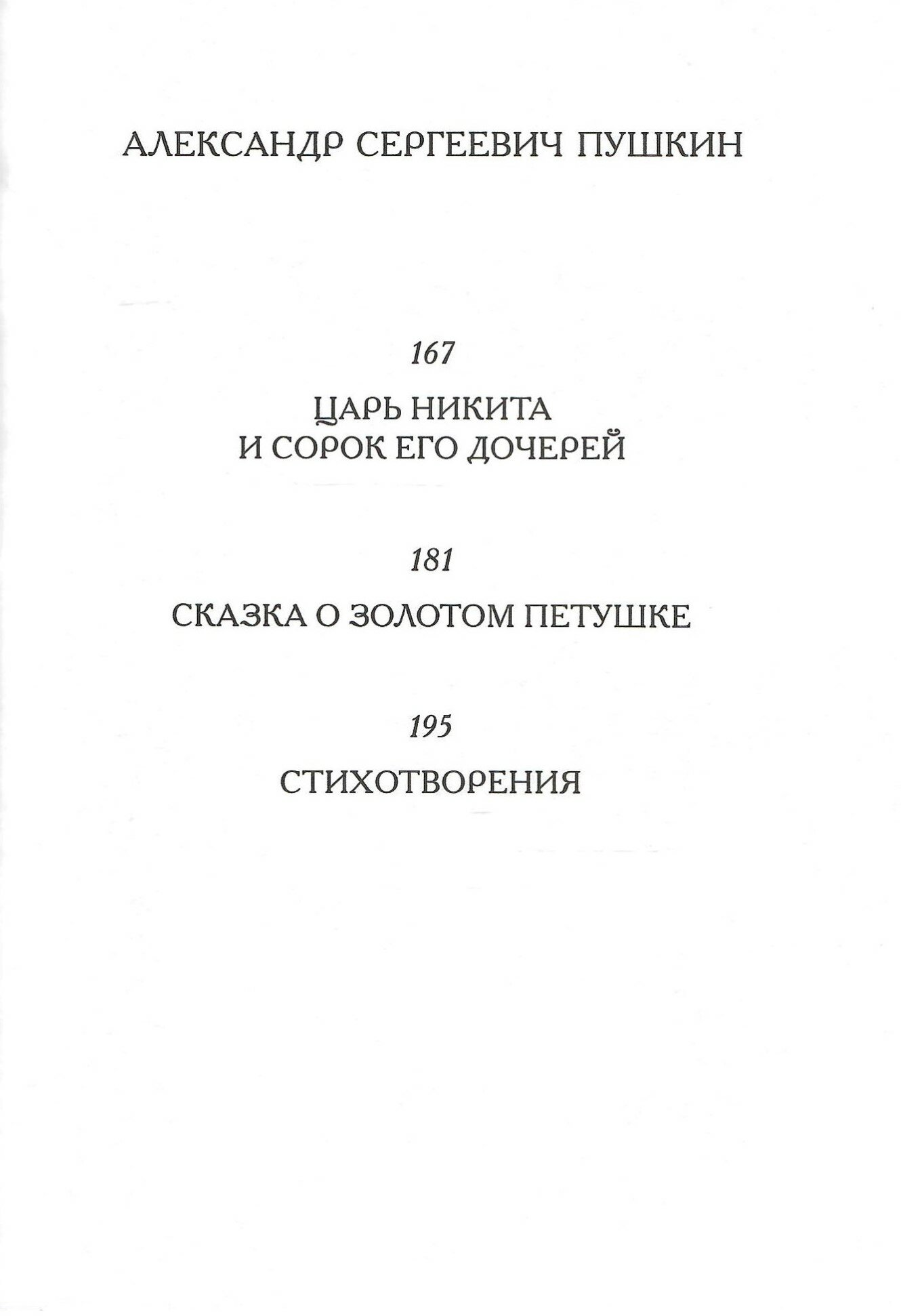 В издание вошли стихотворения и сказки А. С. Пушкина, рассчитанные на взрослую читательскую аудиторию. Тексты произведений сопровождают иллюстрации А. С. Пушкина.