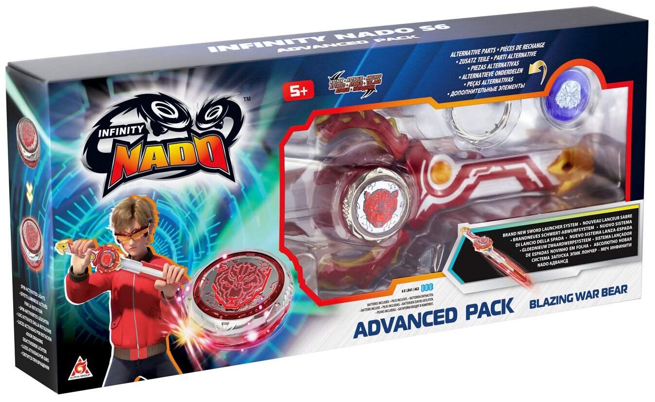 Инфинити Надо – самый мощный блейд для крутейших баттлов! Эпик Лончер – новое представление о пусковых установках и волчках! Готовься к эпичному запуску блейдов Инфинити Надо улучшенным Мечом Эпик Лончер Адвансд, 43 см! Он помогает точнее запустить блейд на арену. Меч не только пусковая установка, но и монтажный инструмент.Используй облегченный волчок для скоростного запуска. Его можно пересобирать: все элементы взаимозаменяемы внутри линейки Эпик Лончер. В наборе ты найдешь дополнительный аватар Надо. Вставь Надо в специальное отверстие до щелчка, раскрути волчок с помощью ножен, нажми кнопку запуска.Блейд Эпик Лончер Адвансд светится при вращении и нажатии на аватар.Особенность волчка:* Огненный Медведь (Blazing Bear) главного героя Алекса – атака.* В наборе: пусковая установка Эпик Лончер Адвандс, металлический светящийся волчок, дополнительные аватар и металлическое кольцо, монтажный инструмент, 6 батареек LR41/AG3 (напряжение 1,5V), входят в комплект. Батарейки замене не подлежат.* Упаковка – коробка с окном 20х44,5х7 см.* Наборы выполнены из высококачественных материалов, товар сертифицирован.Эксклюзивный дистрибьютор бренда "Инфинити Надо" на территории РФ - компания "РОСМЭН.